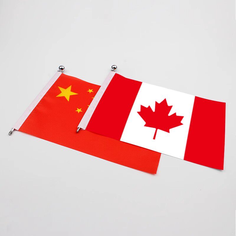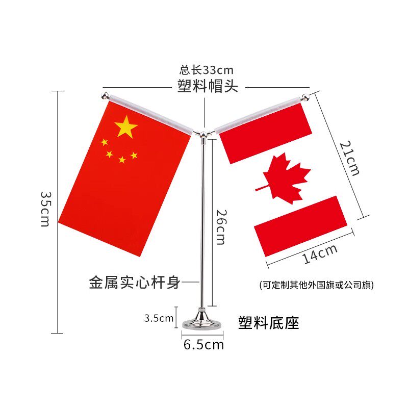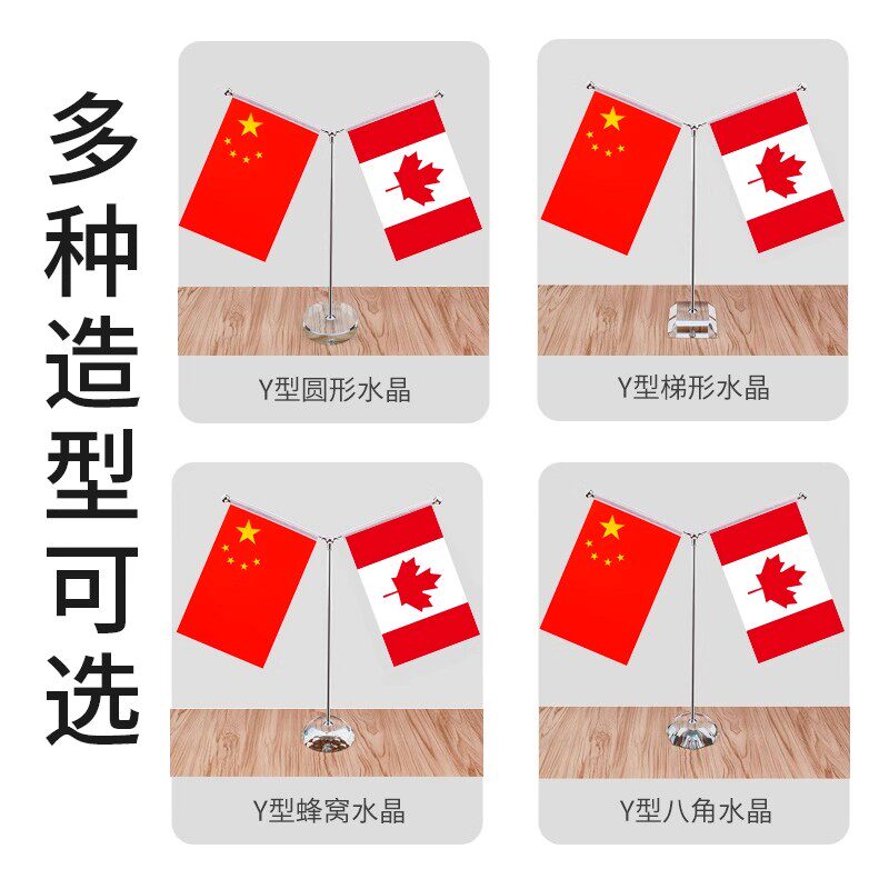 中国加拿大国旗摆件谈判签字签约Y型金色会议室办公桌旗台面贡缎
