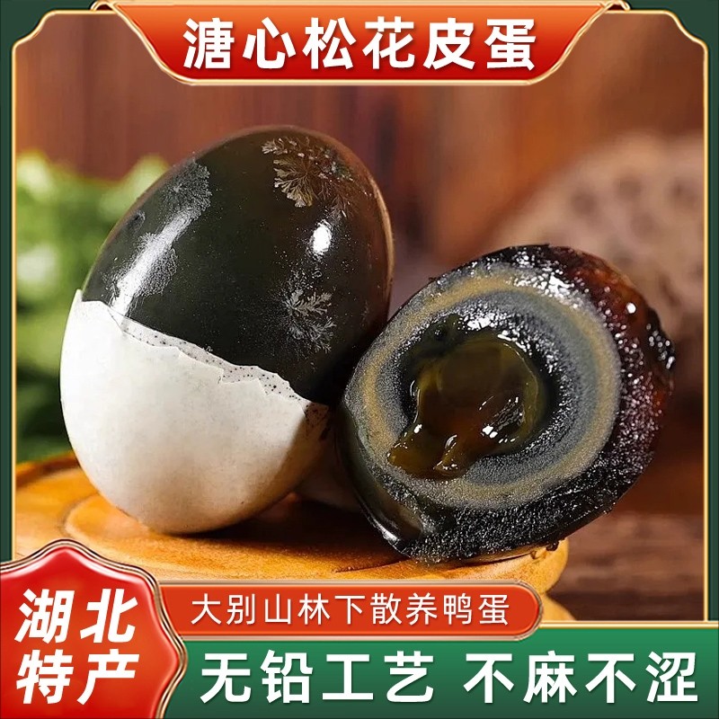 皮蛋正宗湖北特产无铅特大65-75g农家散养不麻不涩溏心松花蛋批发