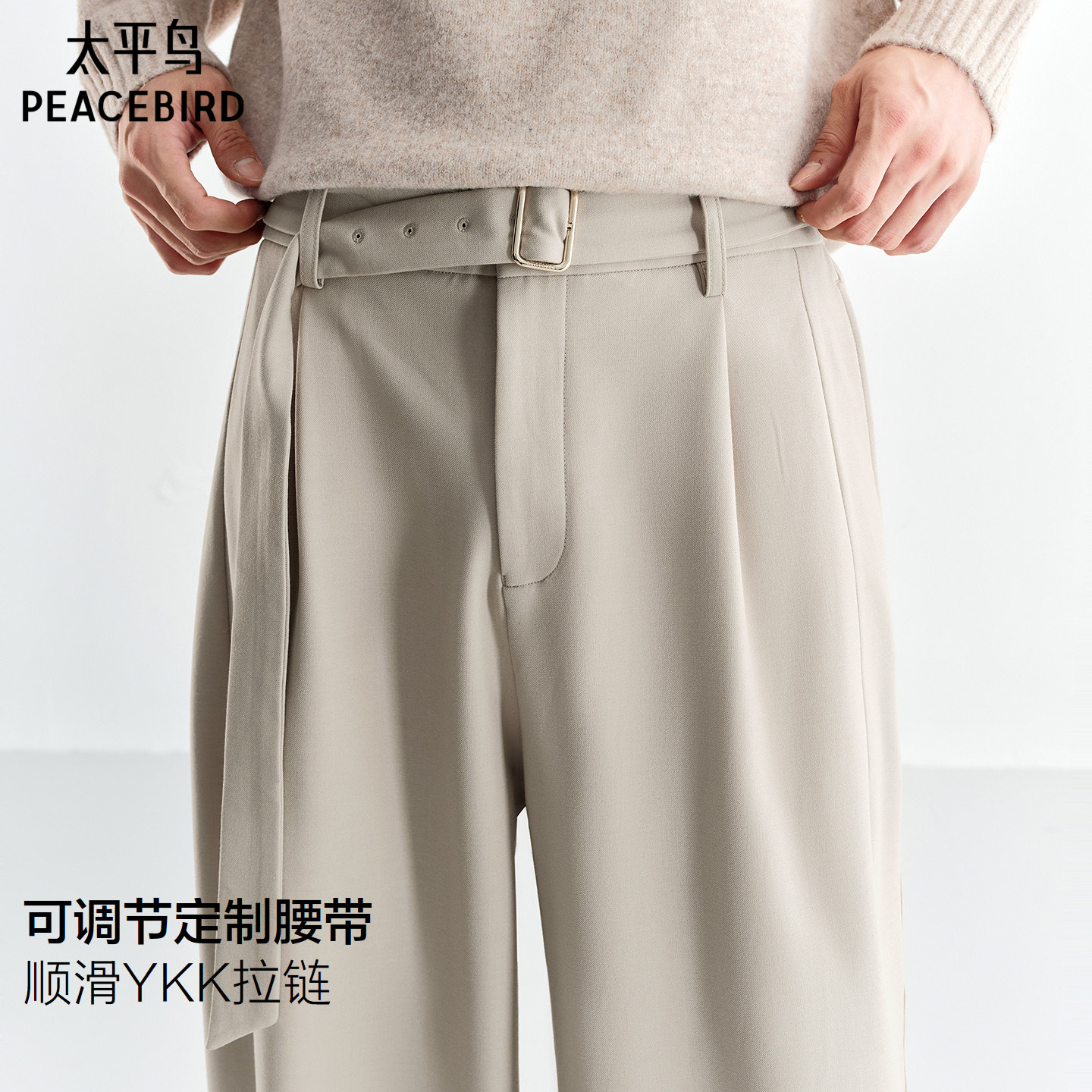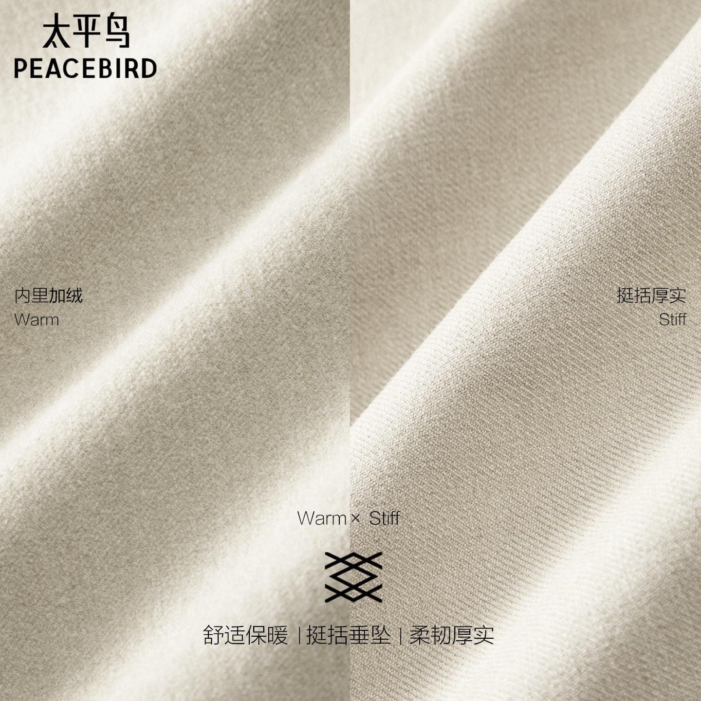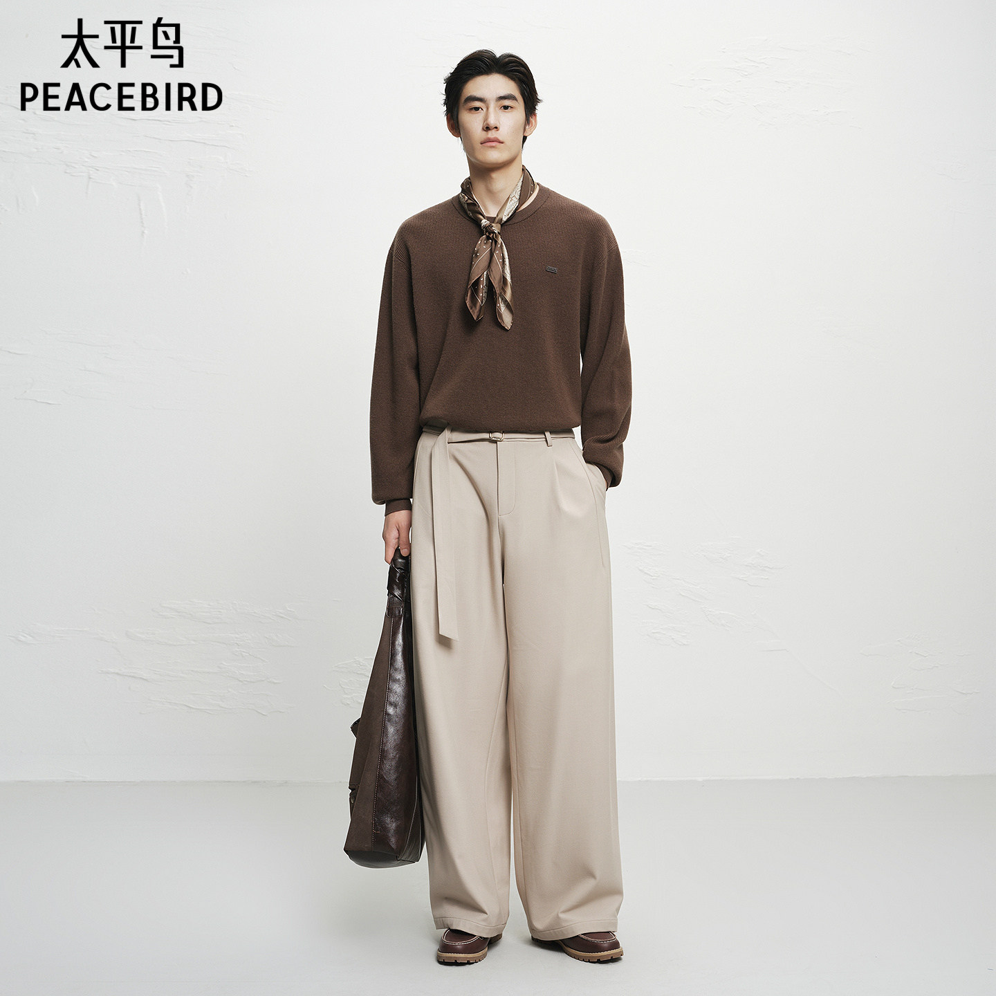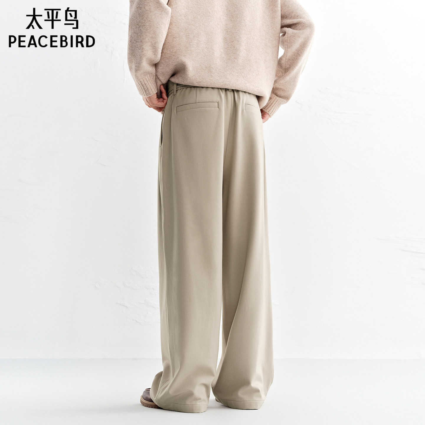 【内里加绒】太平鸟男装休闲裤25冬季新款质感宽松阔腿磨毛西裤