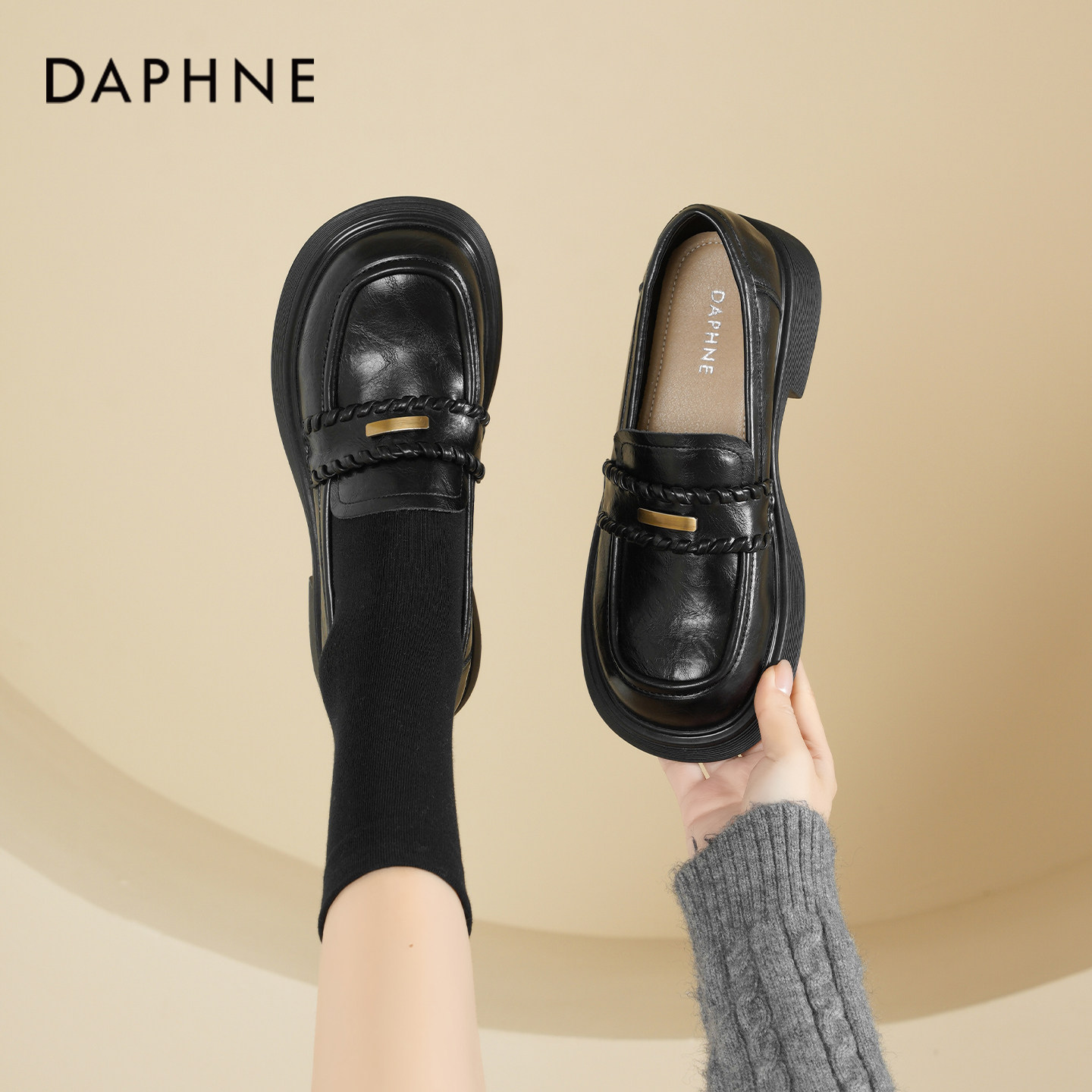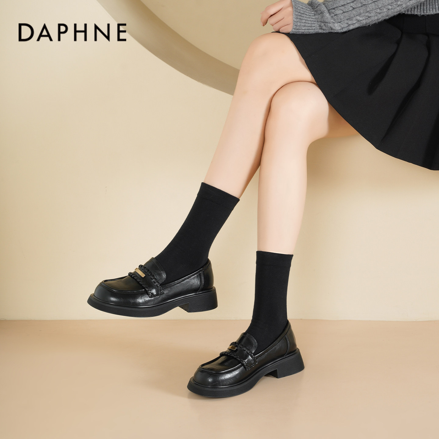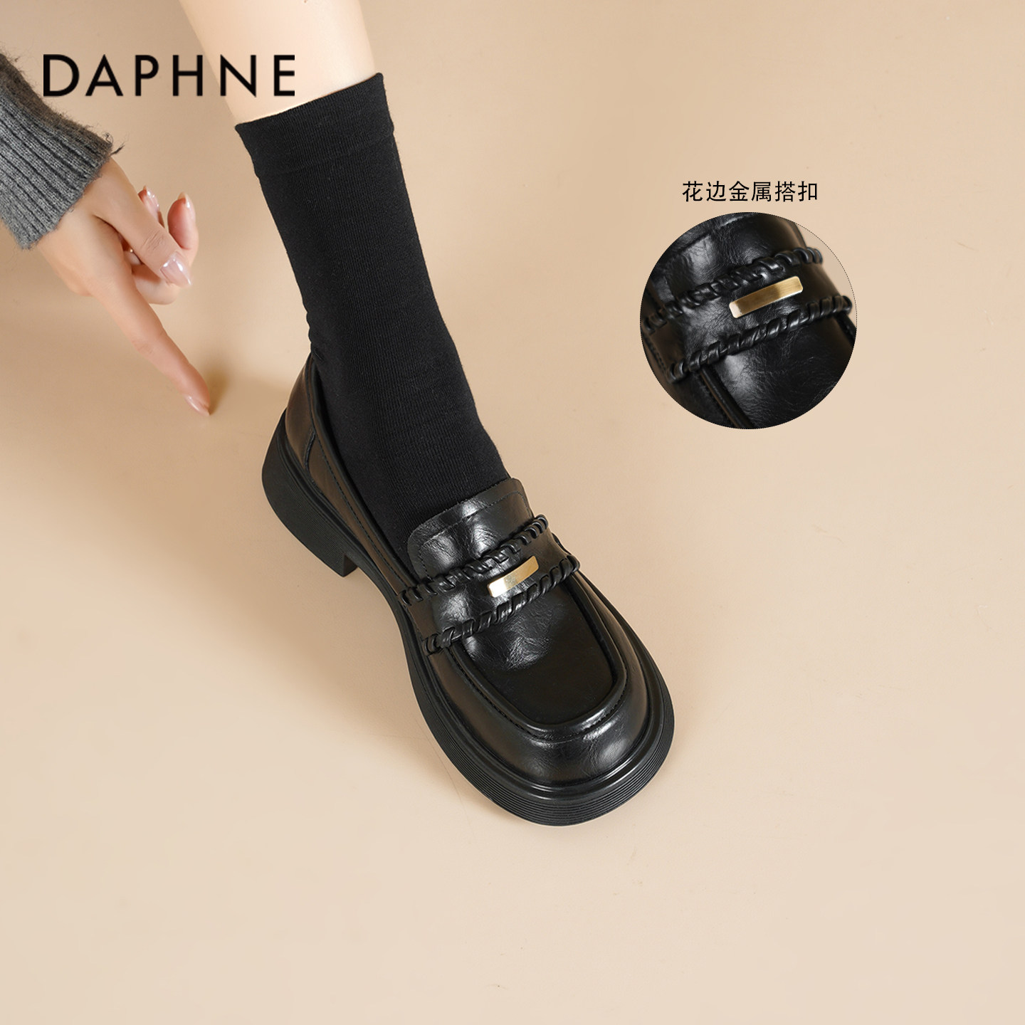达芙妮黑色乐福鞋女款2026新款春季平底单鞋女英伦风中跟小皮鞋女