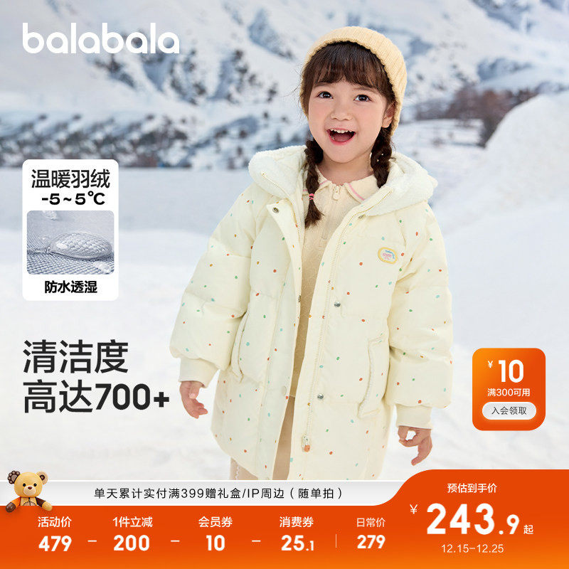 巴拉巴拉童装儿童羽绒服女童冬装甜美可爱连帽上衣厚款保暖户外潮
