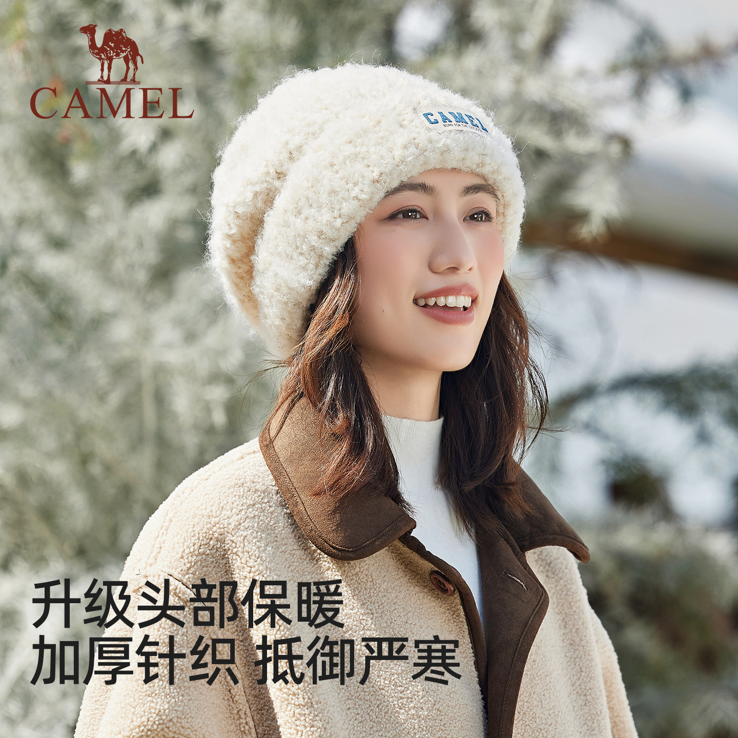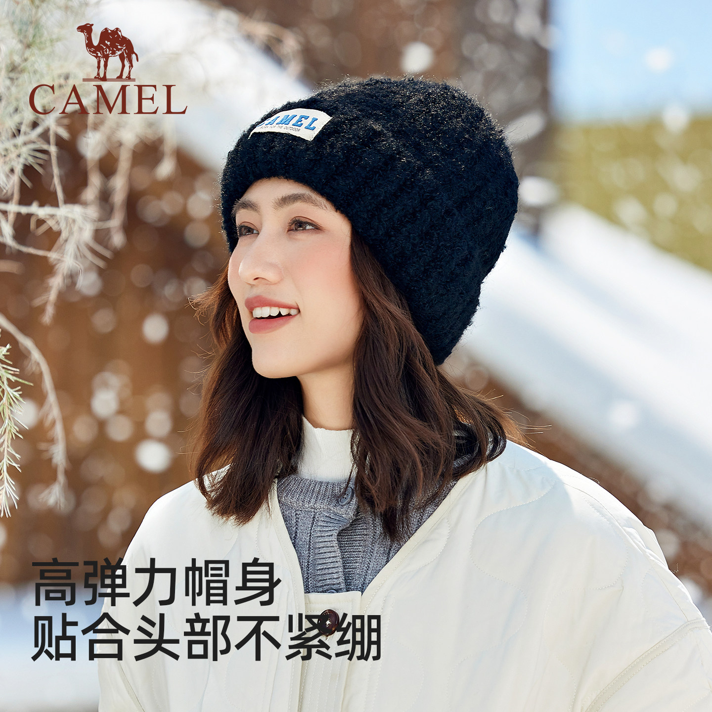 骆驼保暖针织帽2025年秋冬新款纯色男简约防风冷帽百搭女毛线帽子