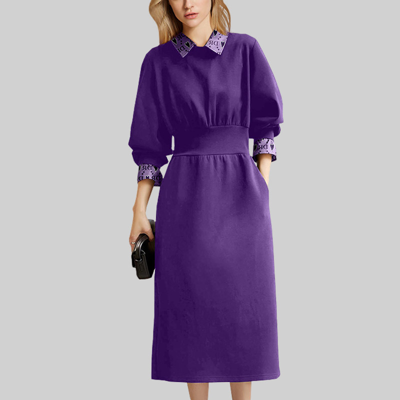 气质紫色polo领收腰连衣裙女2025年秋新款洋气收腰显瘦减龄中长裙