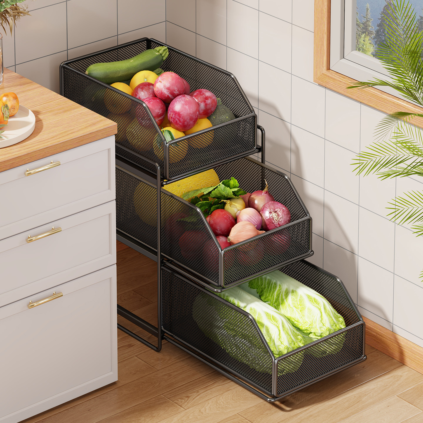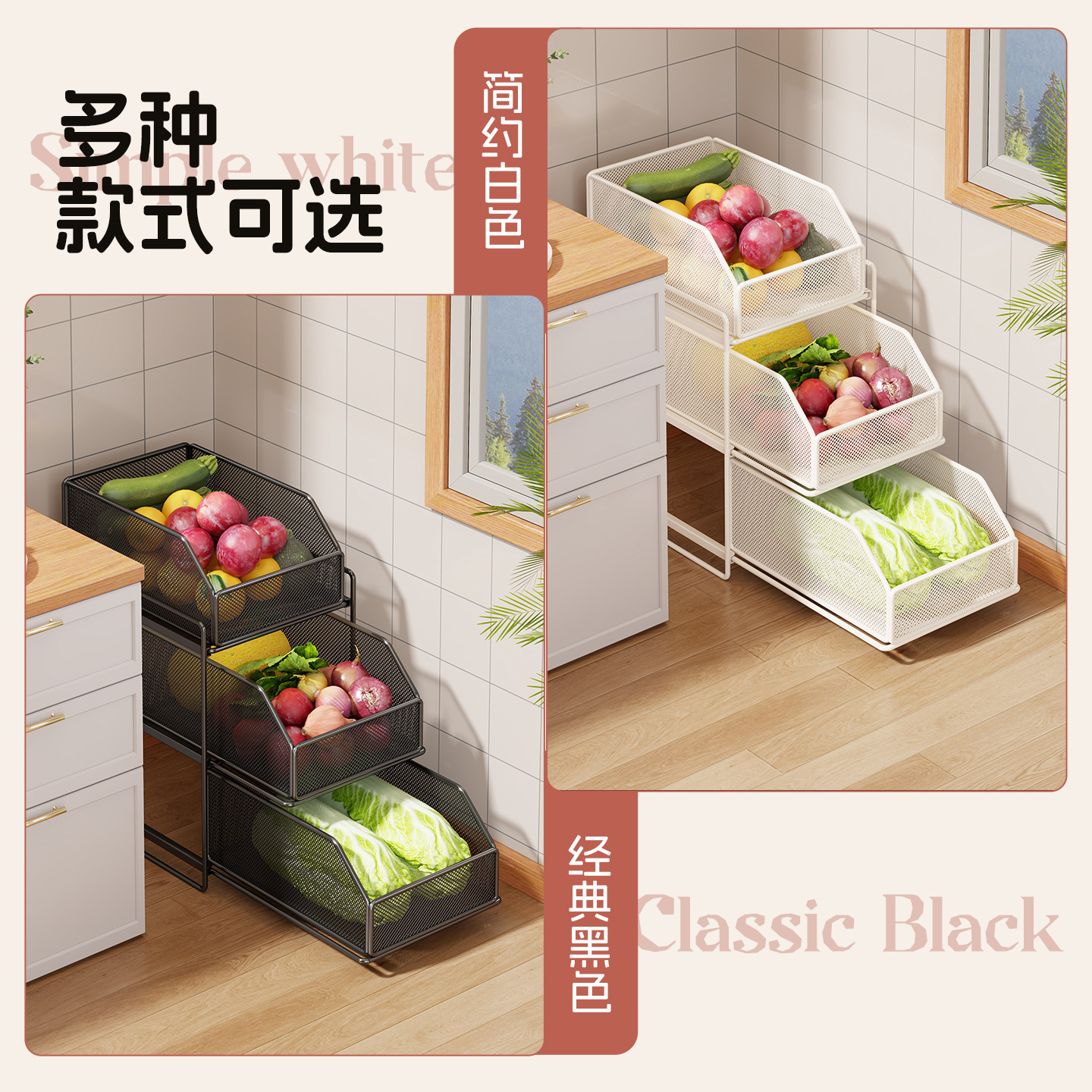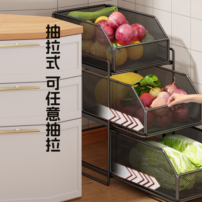 新款厨房置物架落地多层蔬菜收纳架家用多功能开放式抽屉储物架子