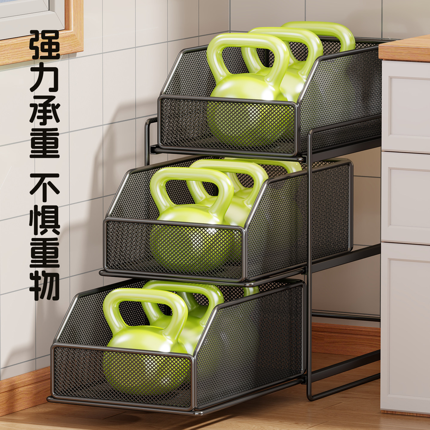 佳帮手厨房置物架落地锅具收纳架厨房家用分层锅架下水槽放锅架子