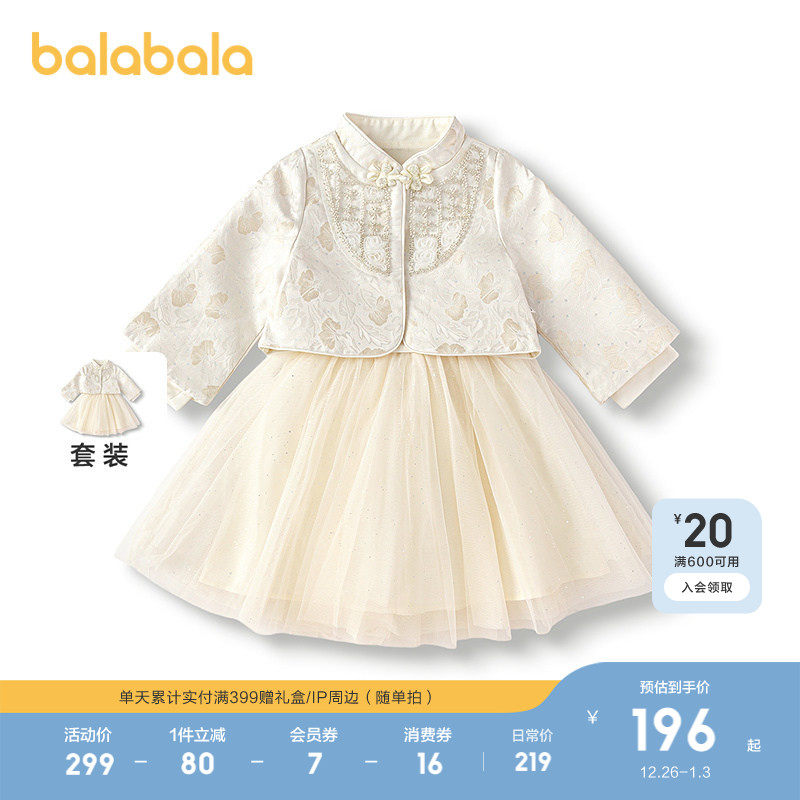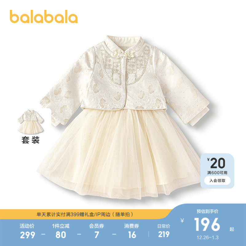 巴拉巴拉童装儿童女童新中式套装网纱蓬蓬裙两件套秋新款国风洋气