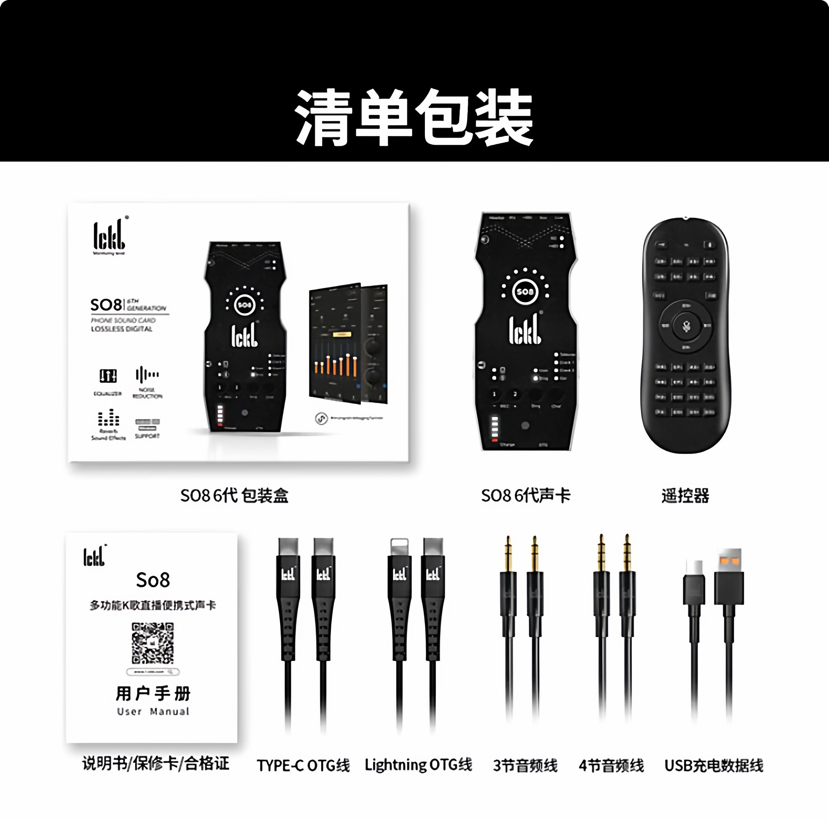 ickb so8第6代手机声卡唱歌专用麦克风套装直播户外录歌唱歌套装