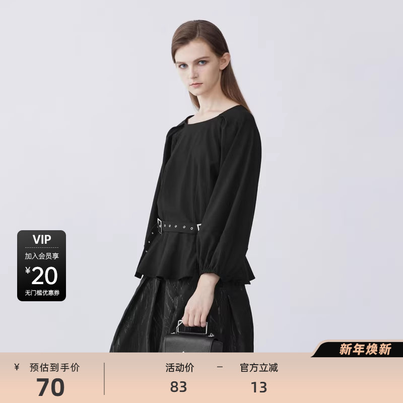 【秒杀】S·DEER圣迪奥女装秋休收腰抽褶泡泡袖衬衫S21380536