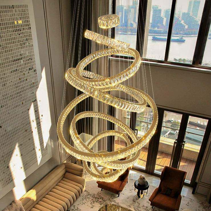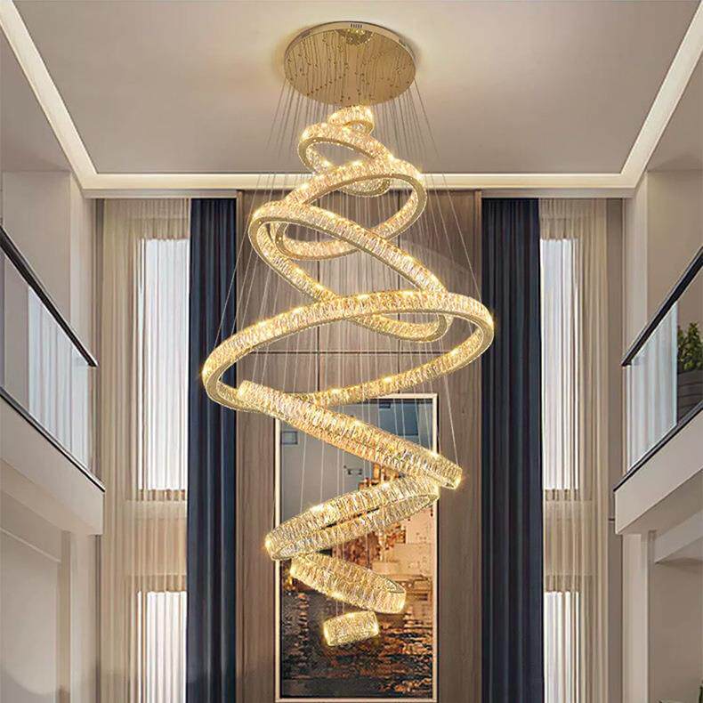 复式楼大吊灯现代轻奢别墅创意客厅灯酒店大堂售楼部loft楼梯吊灯