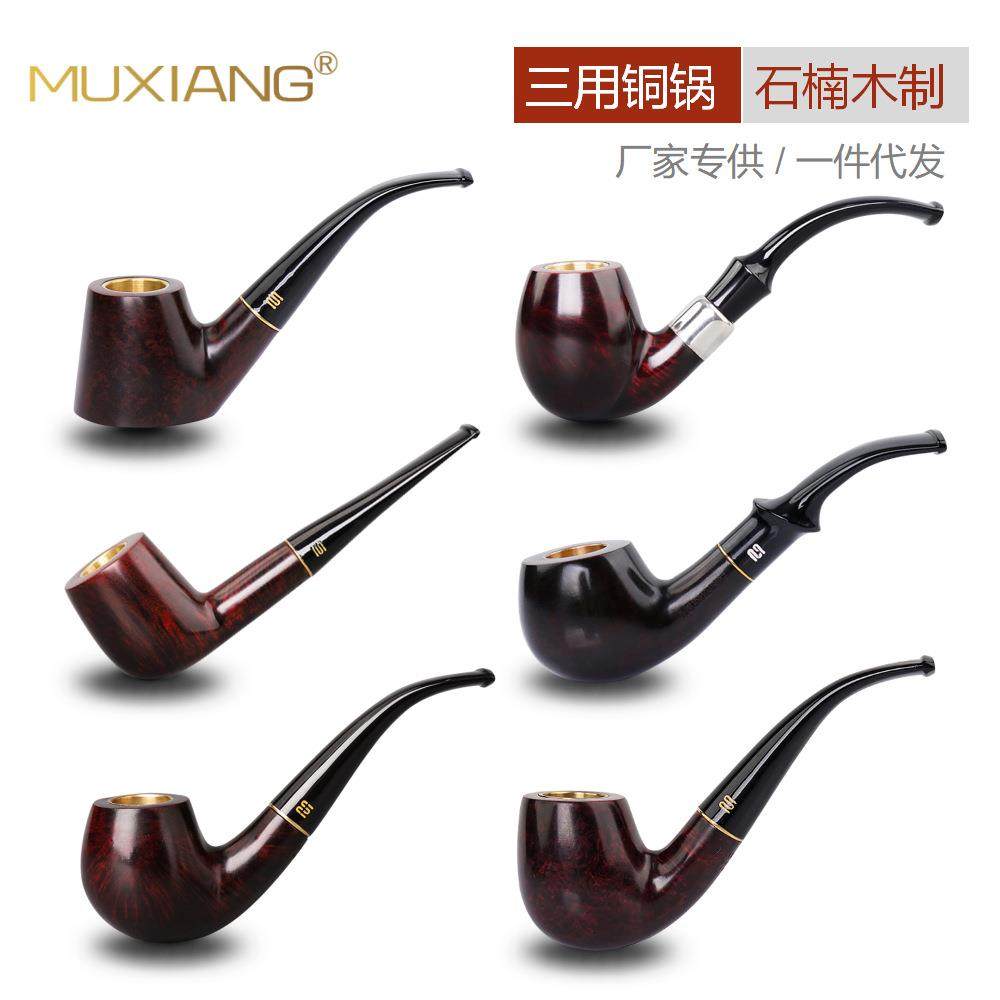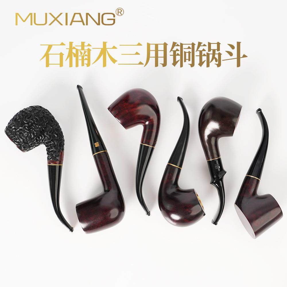 木香石楠木烟斗老式烟斗木制烟具烟袋锅三用铜锅手工实木