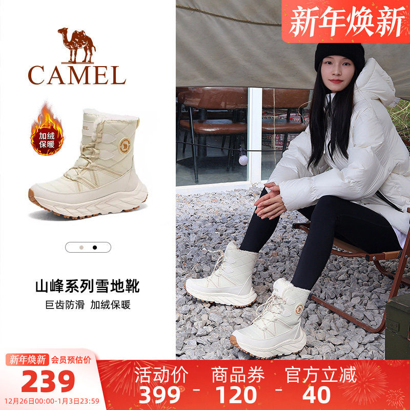 骆驼雪绒户外雪地靴女款新款冬季厚底登山靴子防寒加绒保暖徒步鞋