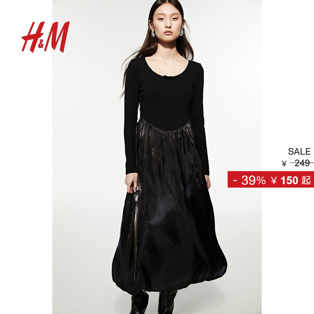 HM女装连衣裙2025年冬季新款灯笼裙摆礼服裙1270121