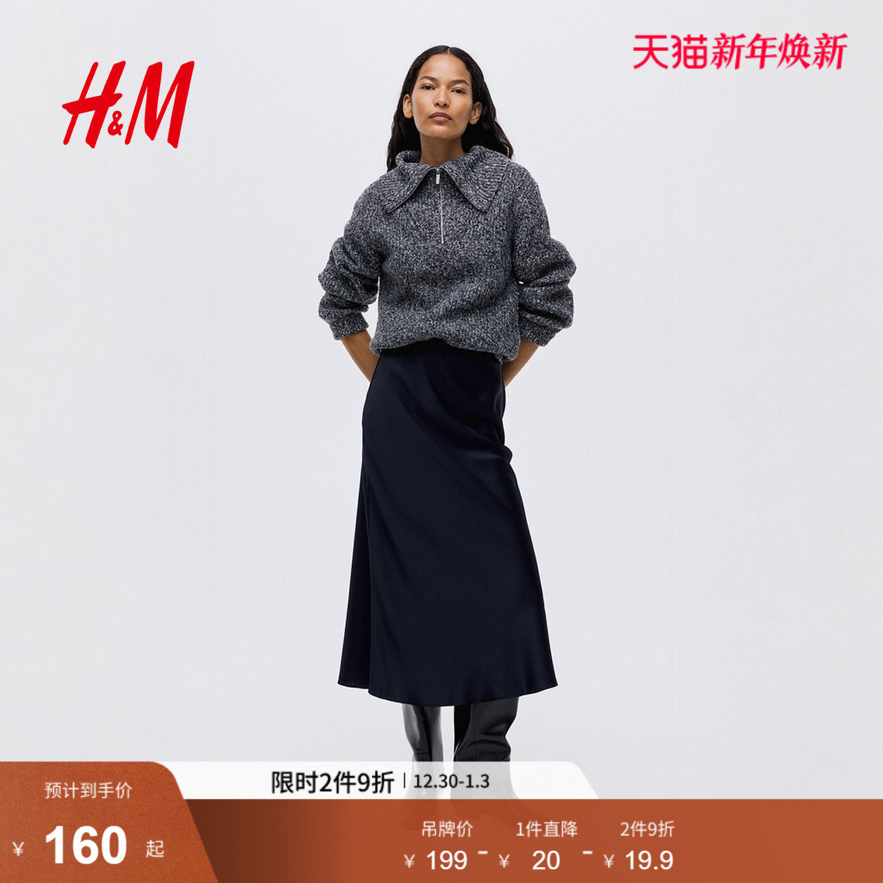 秋冬羊绒半身裙女秋冬新款中长高腰显瘦百褶大摆裙A字针织羊毛裙