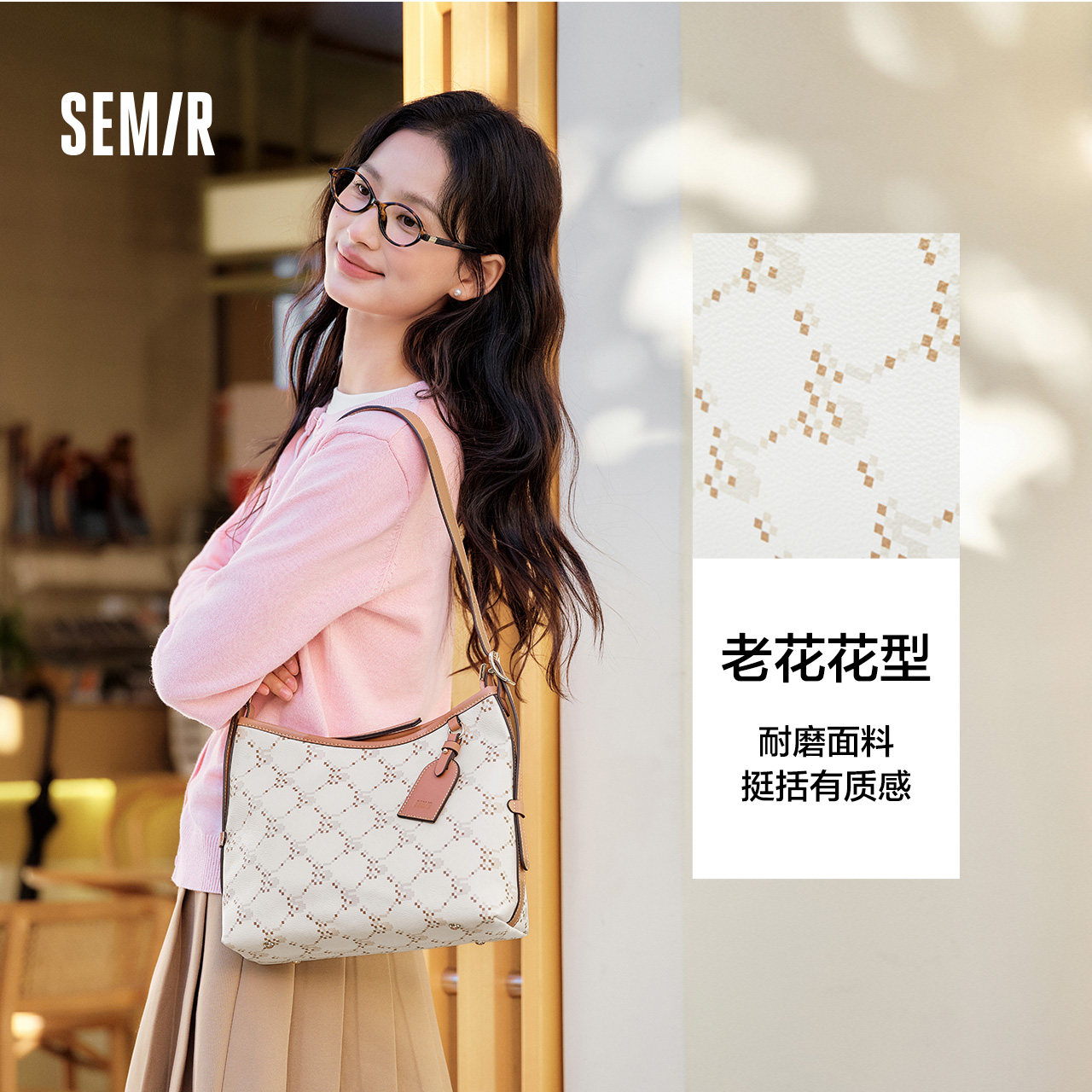 森马包包托特包女2025新款质感复古老花单肩斜挎包通勤上班手提包