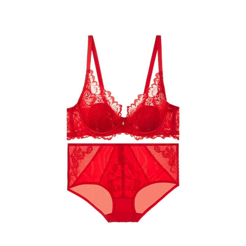 结婚新娘本命年红色 性感蕾丝文胸套装