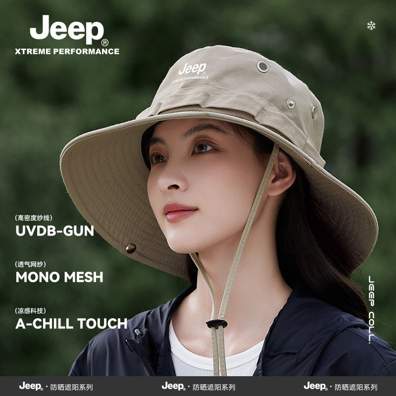 jeep吉普渔夫帽女士夏季户外防紫外线大檐遮阳帽防晒透气太阳帽子