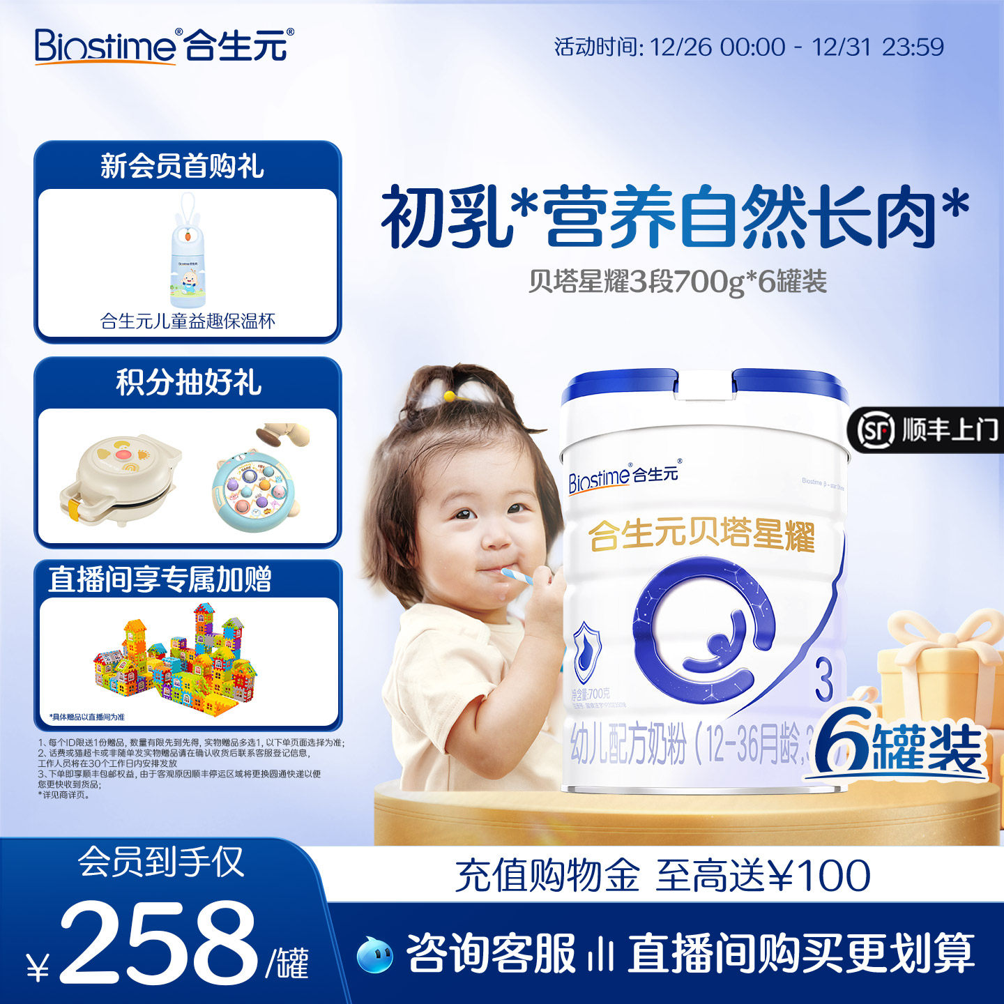 合生元贝塔星新国标升级贝塔星耀幼儿配方奶3段700g6罐α乳清蛋白