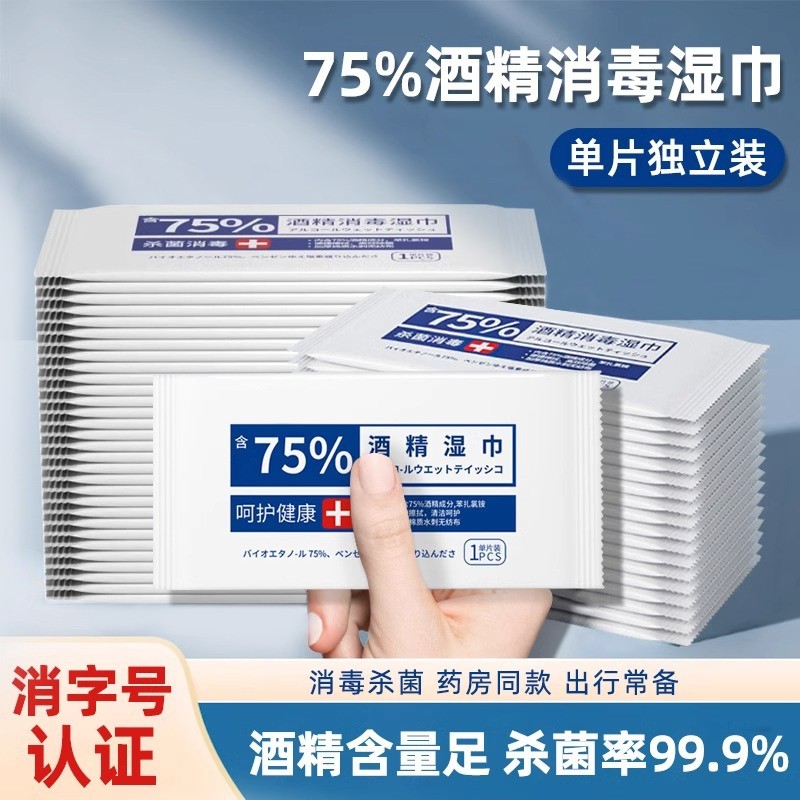 75度酒精湿巾消毒学生一次性小包便携杀菌湿纸巾单片单独独立包装