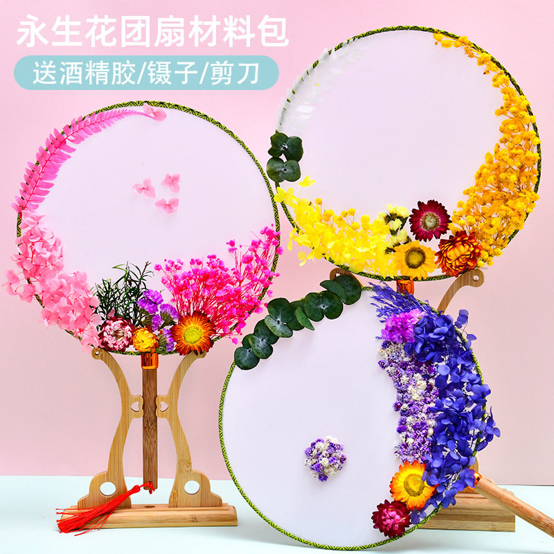 空白复古团扇天然永生花干花diy材料包手工制作工艺品花束礼物