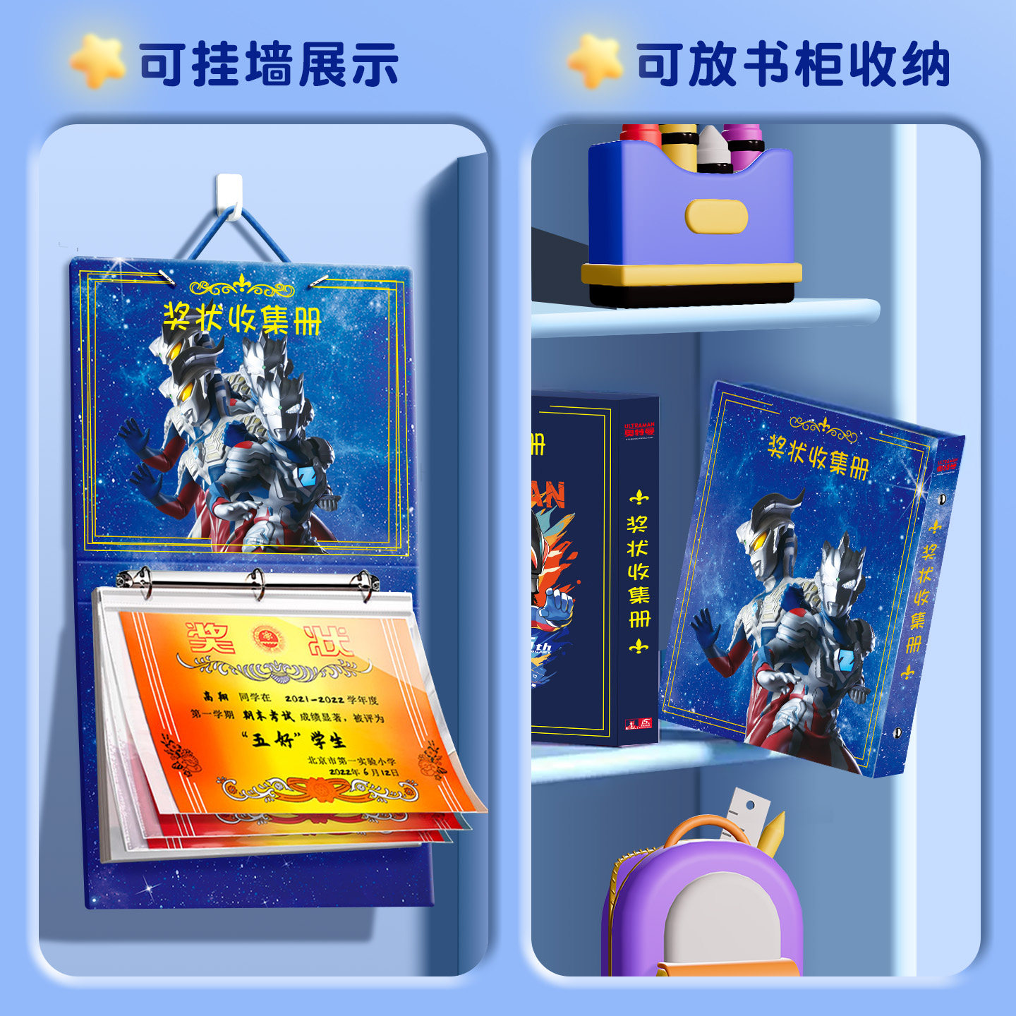奥特曼奖状收集册2026新款收纳挂墙展示小学生儿童画画放奖状收纳册男孩画册a4整理神器可挂墙a3收纳袋收纳盒