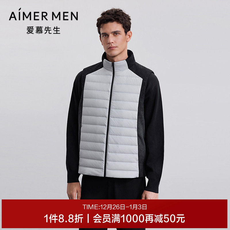 【轻休闲】爱慕先生棉莫混纺含白鹅绒男士防风拒水外穿马甲25秋冬