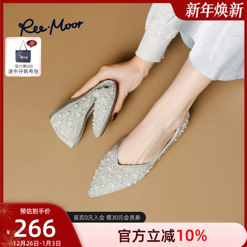 REEMOOR睿慕2025秋季新款法式珍珠尖头浅口单鞋平底鞋女鞋