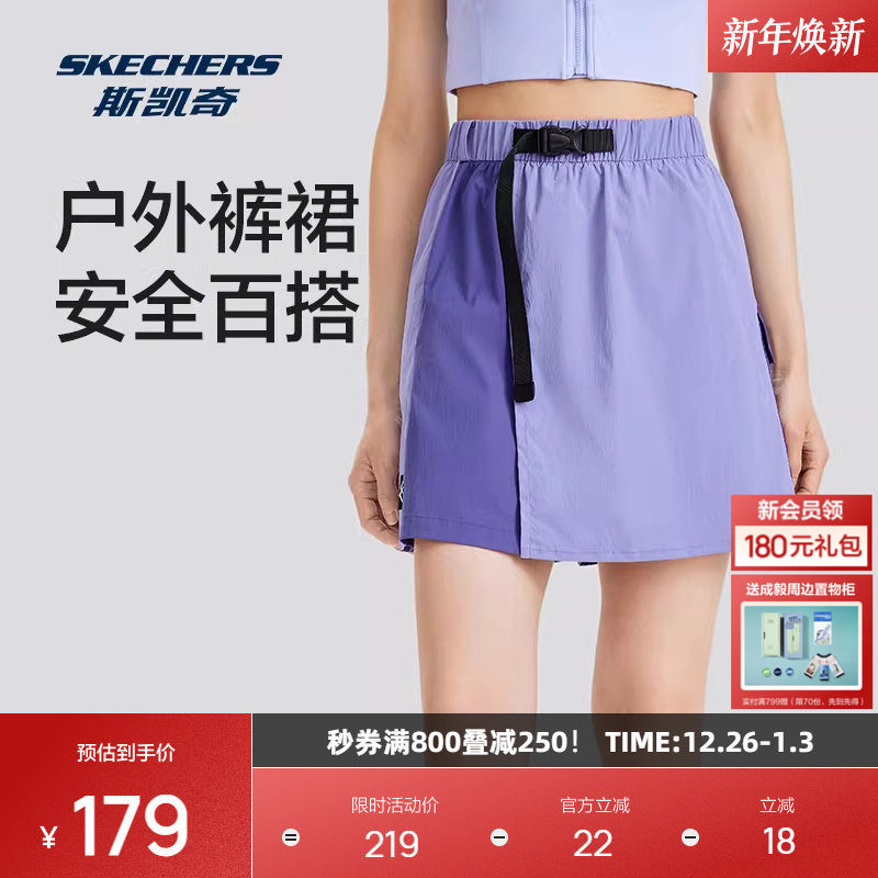 斯凯奇女款梭织撞色工装短裙裤高腰摆裙型防走光舒适百搭宽松短裤