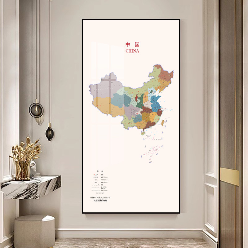 客厅地图装饰画入户门玄关画壁画中国办公室竖挂画竖版艺术立体