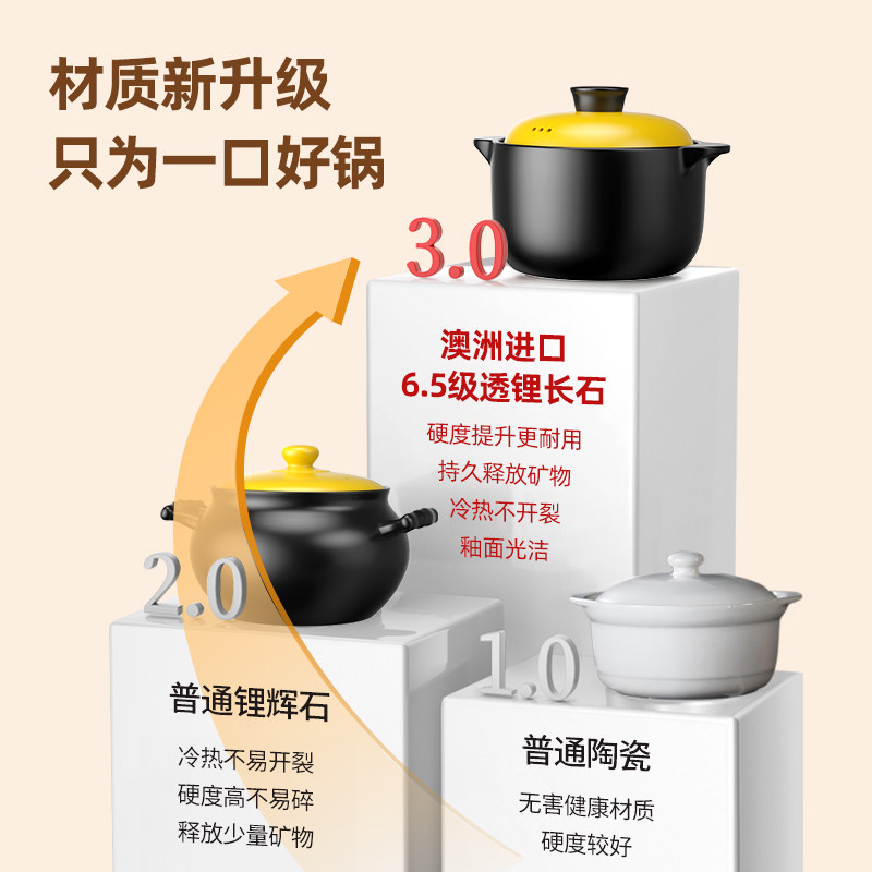 砂锅家用耐高温干烧不裂炖锅燃气陶瓷煲汤锅煤气灶汤煲沙锅无涂层