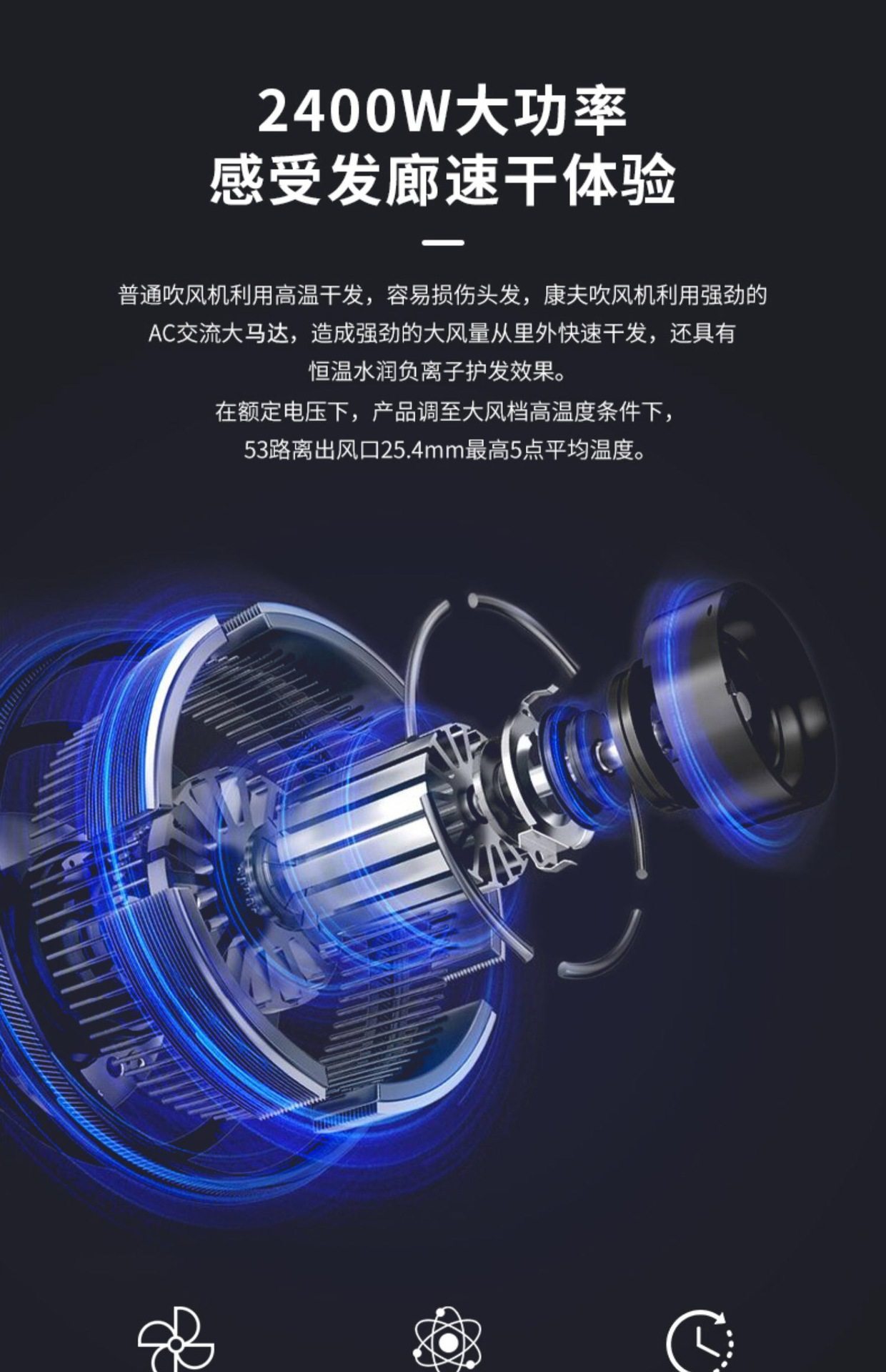 康夫电吹风大功率2400W恒温冷热风发廊理发店专用吹风机造型速干