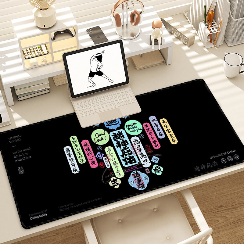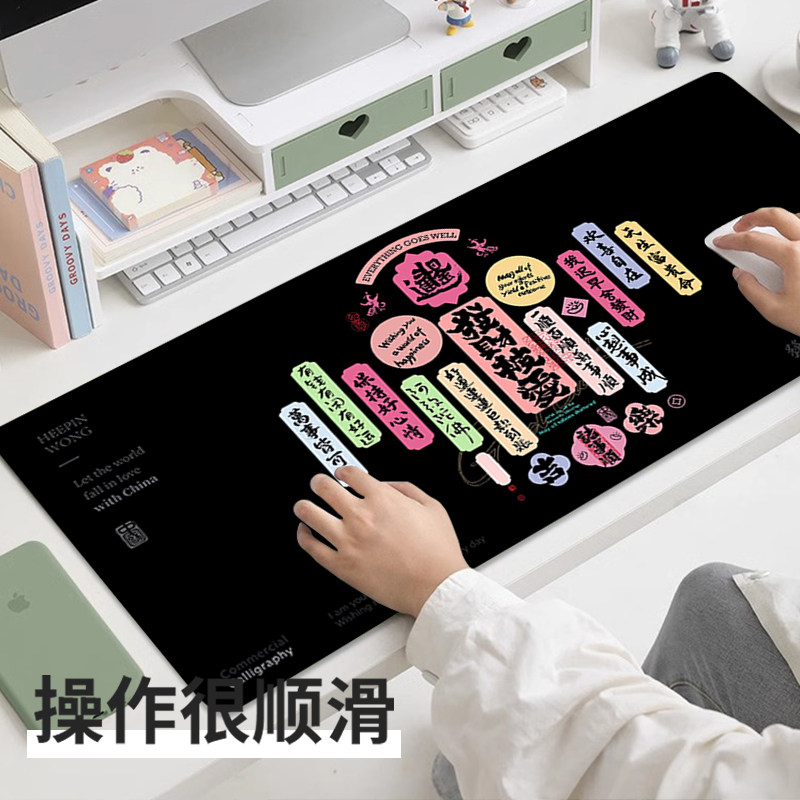 黑粉发财文字鼠标垫超大高颜值办公桌垫定制电脑垫文艺键盘款男女