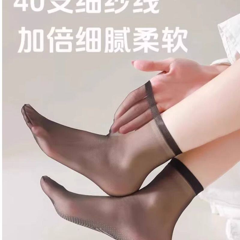 丝袜女短袜夏季薄款隐形透明防勾丝无痕防滑超薄中筒袜耐磨水晶袜