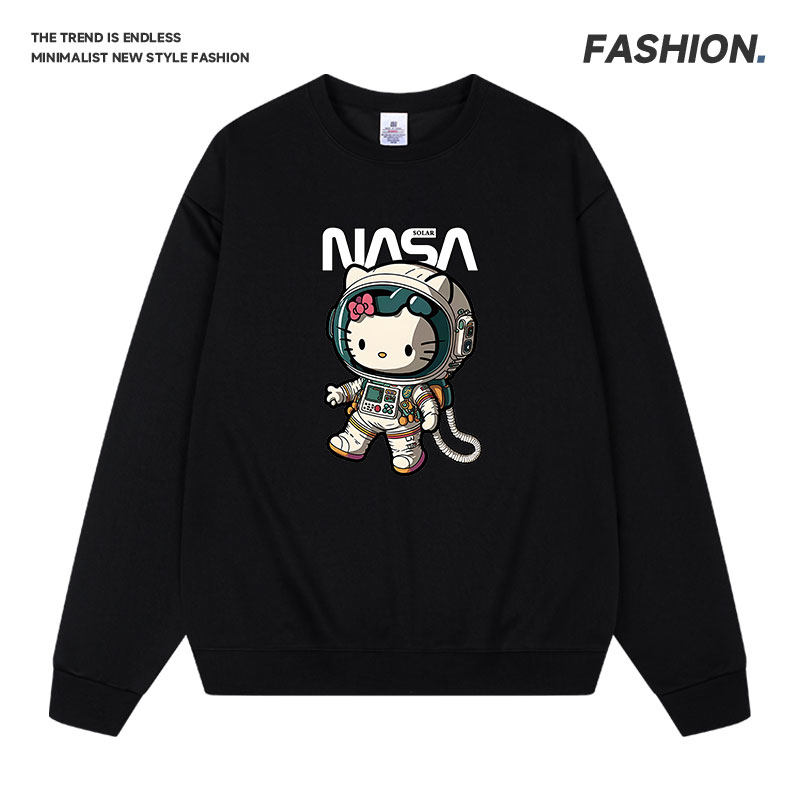 NASA原创秋冬季男士卫衣宽松加绒加厚套头圆领打底衫长袖T恤大码
