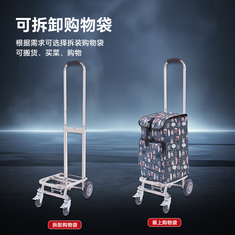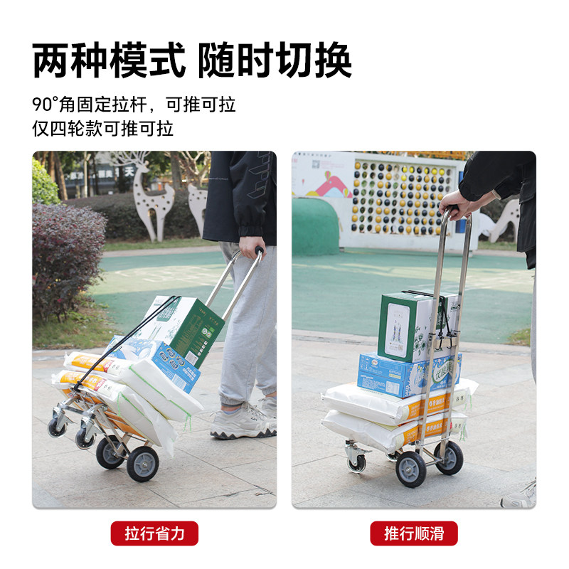 买菜车小拉车折叠便携手拉车不锈钢推车行李车拉杆拖车家用购物车