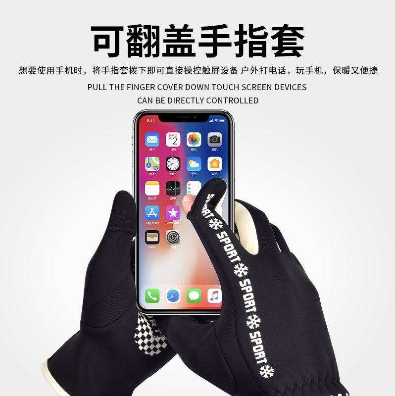 棉滑雪手套男女冬季防水触屏跑步运动骑行登山装备加绒厚保暖防风