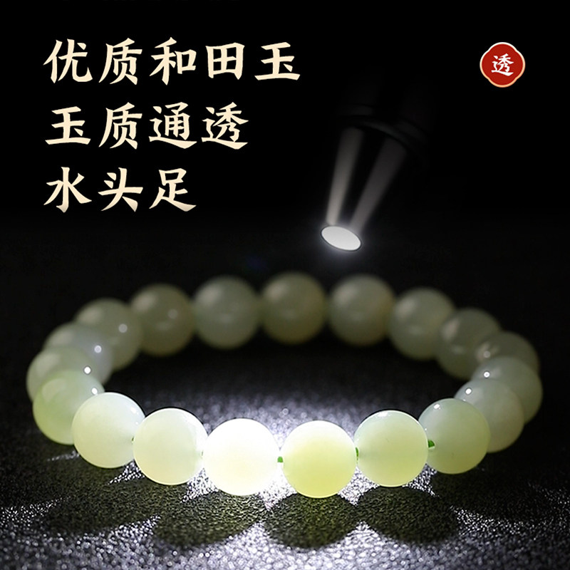 天然和田玉晴水手串女男青海料晴水青白玉玉石珠子串珠碧玉手链男