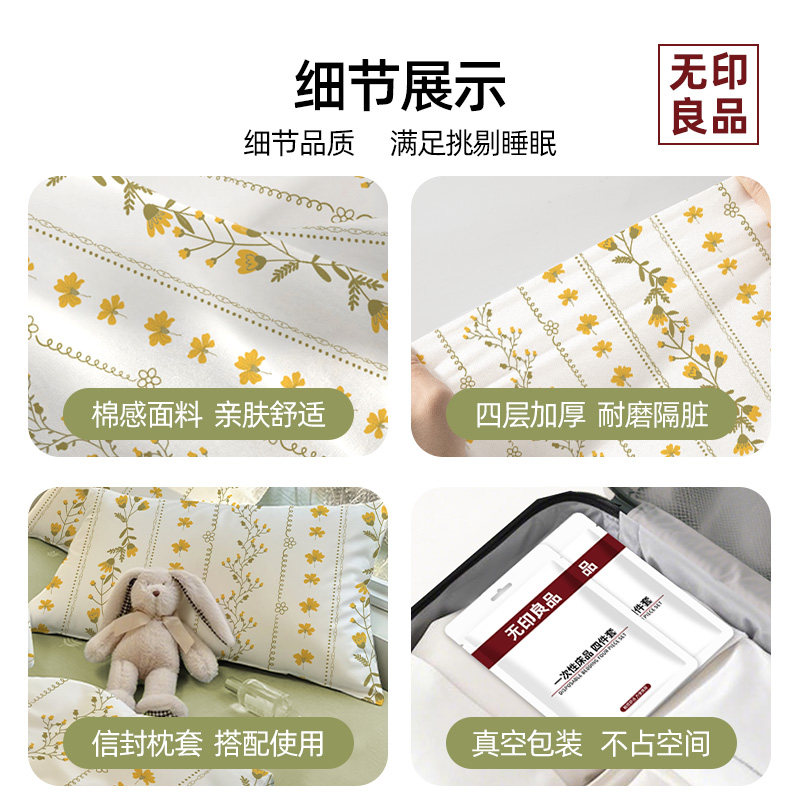 无印良品一次性床单四件套被罩枕套床笠旅行酒店火车卧铺加厚床品