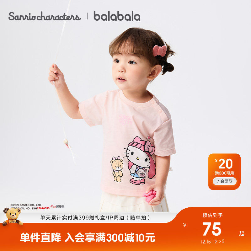 【三丽鸥IP】巴拉巴拉宝宝短袖t恤女童2025夏季新款内搭休闲上衣