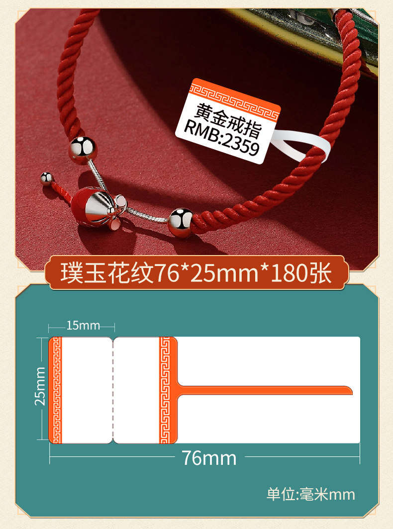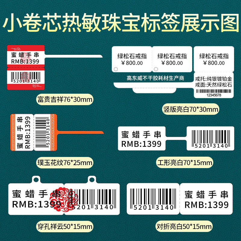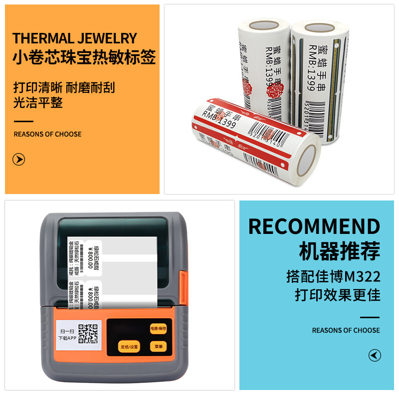 小卷芯热敏珠宝标签不干胶合成纸条码标签纸首饰吊牌标识黄金银饰手链子项链戒指手镯眼镜礼品商品价格空白标