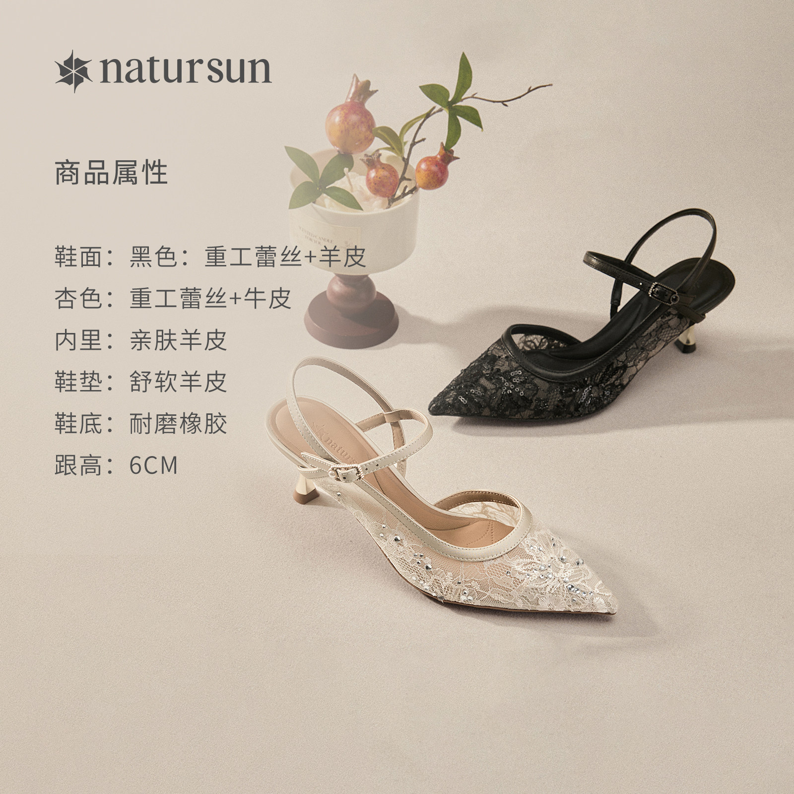 natursun包头凉鞋女春季休闲百搭单鞋气质名媛优雅一字带细高跟