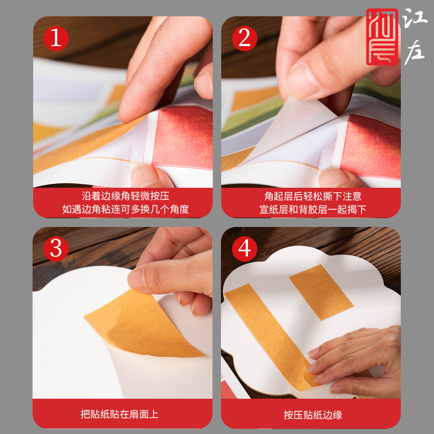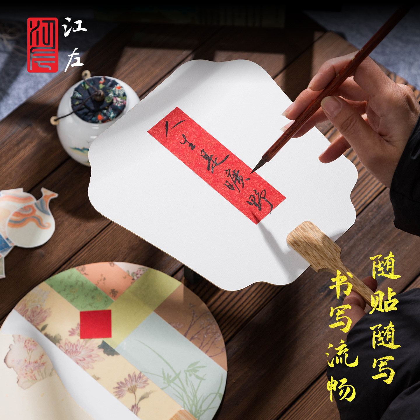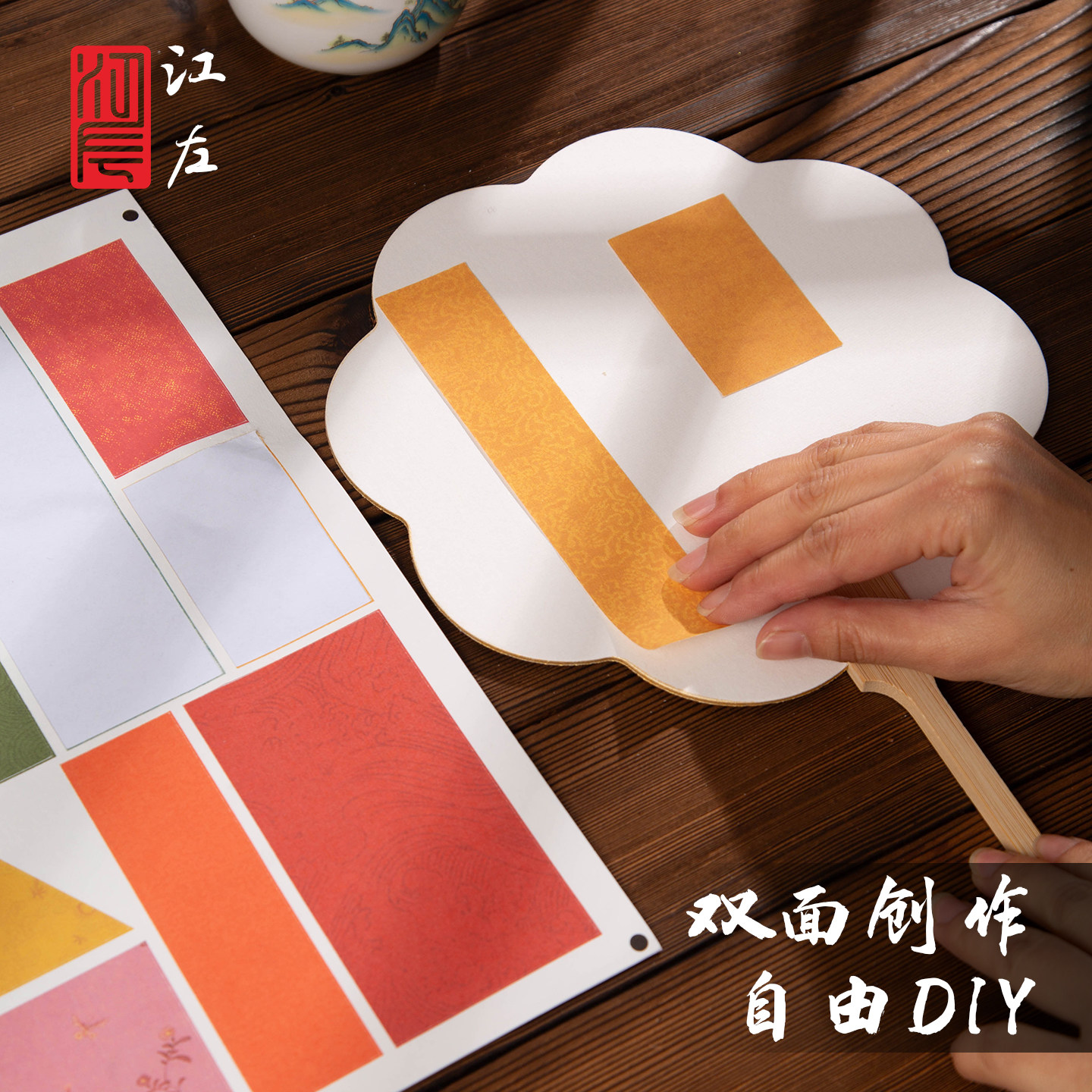 江左文创DIY团扇贴纸套装手工创意材料包一撕一贴宣纸不干胶毛笔书法创作专用古典中国风卡纸扇面手绘作品扇