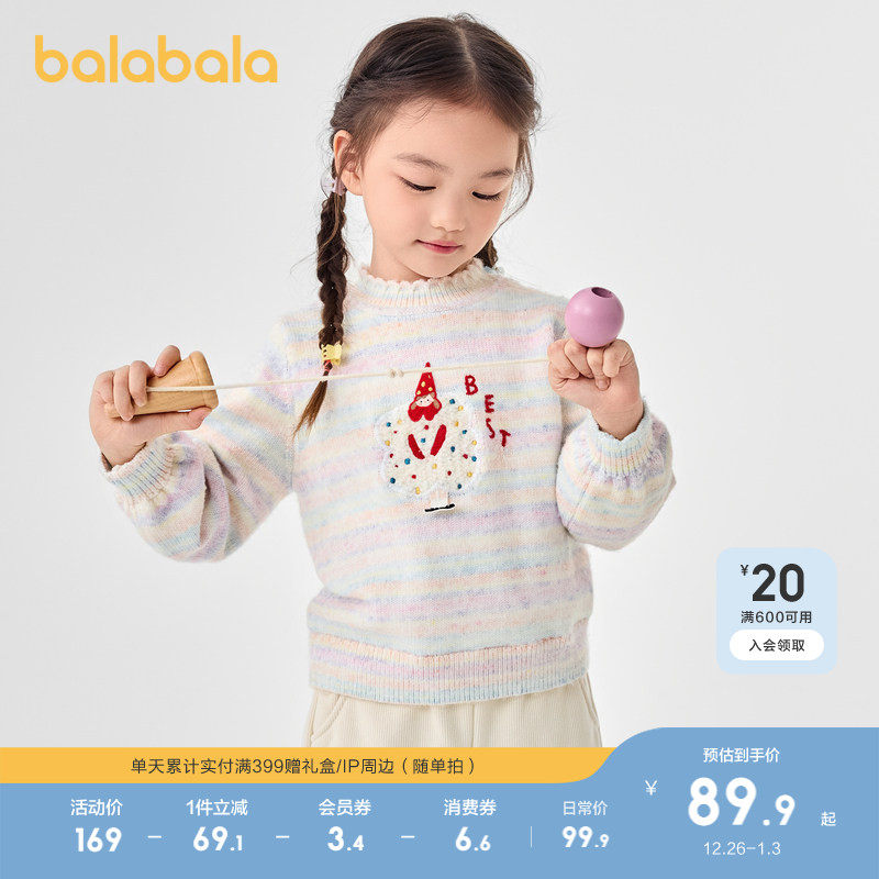 巴拉巴拉童装儿童毛衣女童2025秋冬甜美绣花毛衫线衣百搭时尚上衣