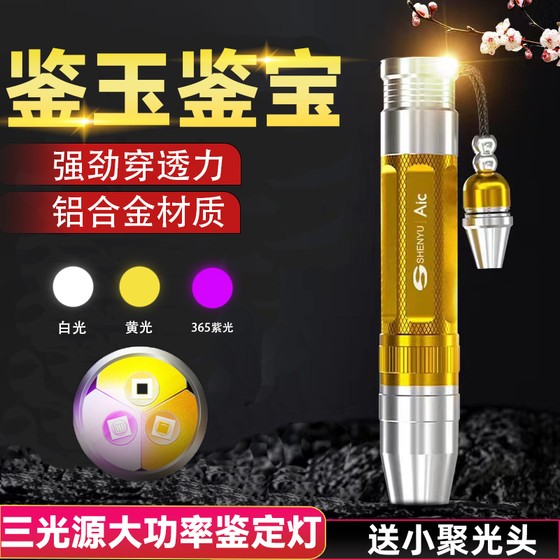 专业鉴定照玉石专用强光手电筒超亮充电鉴别看宝石翡翠文玩紫光灯