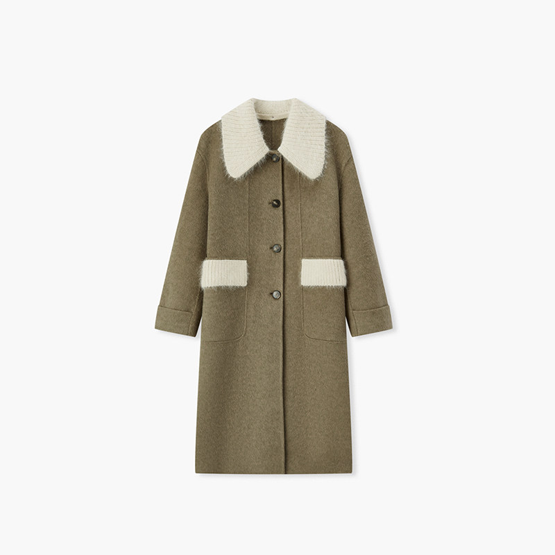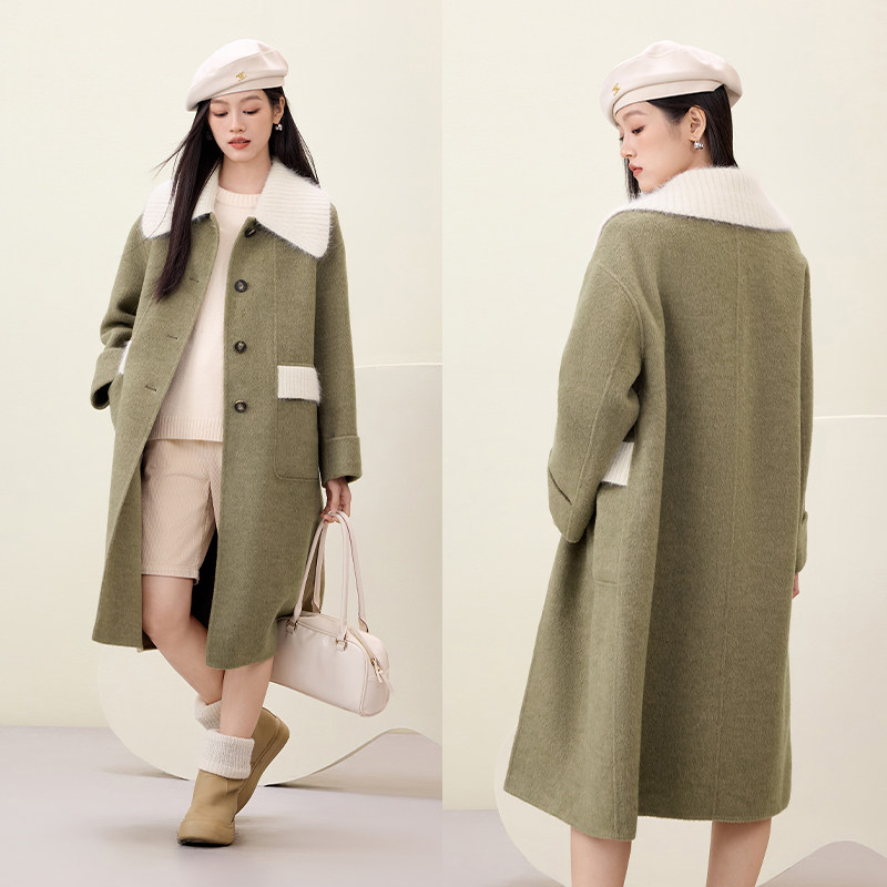 爱居兔抗静电双面呢大衣女冬季新款苔藓绿高级感大衣外套