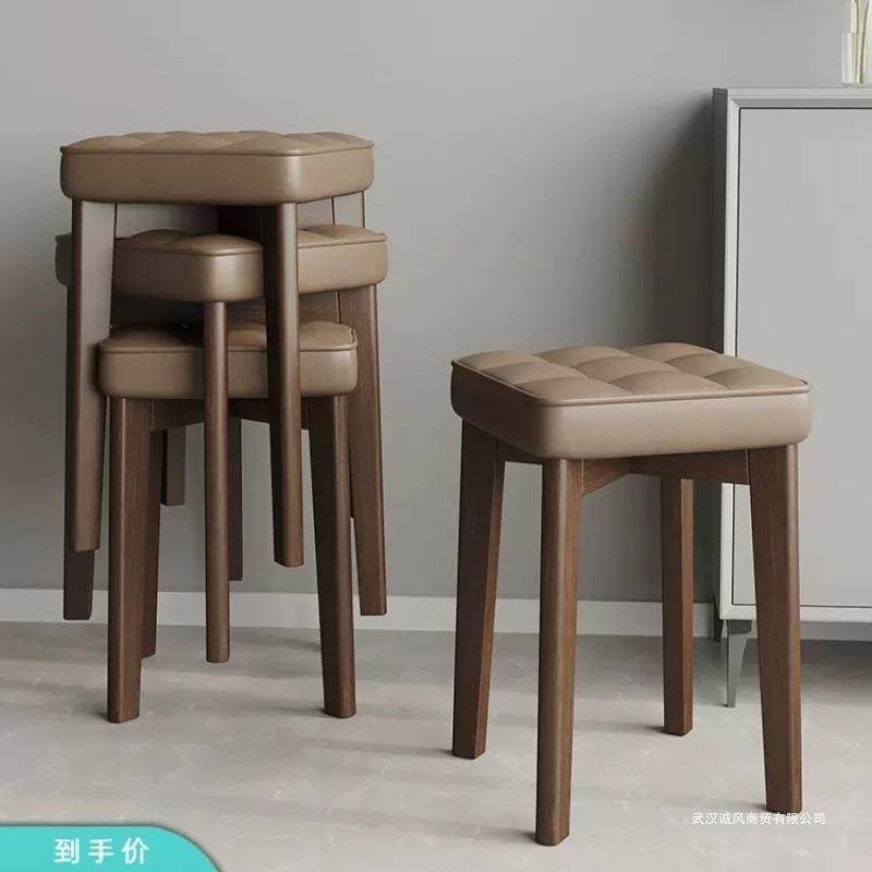 实木凳子家用小方板凳可叠放简易圆凳梳妆矮凳客厅餐桌椅子收纳凳