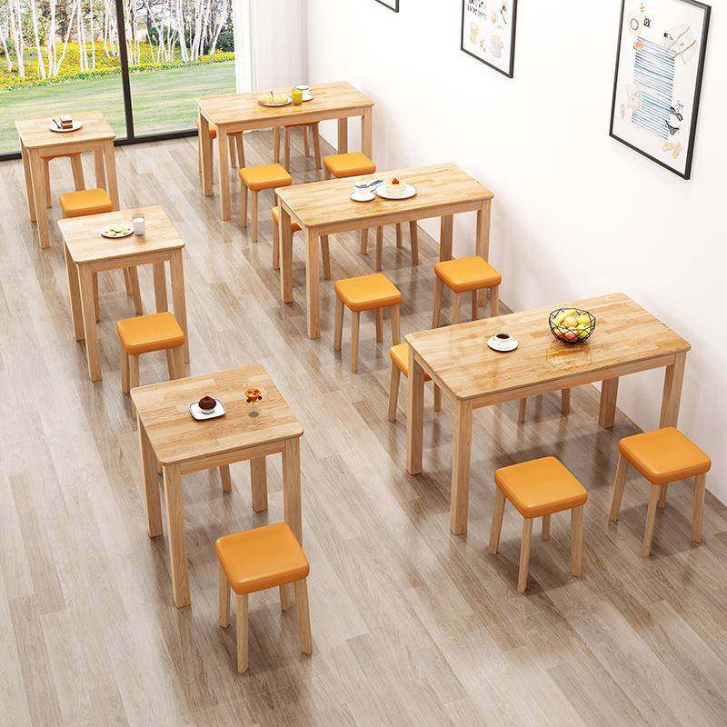 实木现代简约长方形餐桌椅小吃店商用可拆卸收纳凳