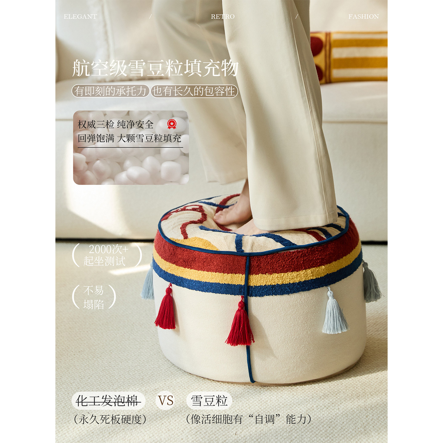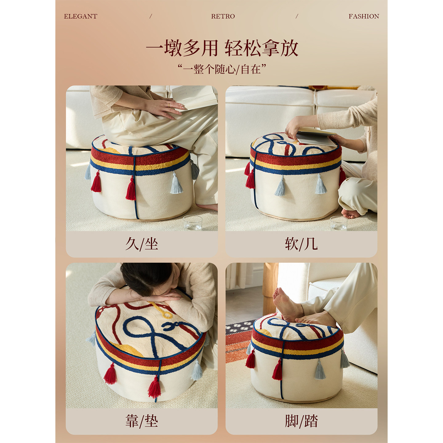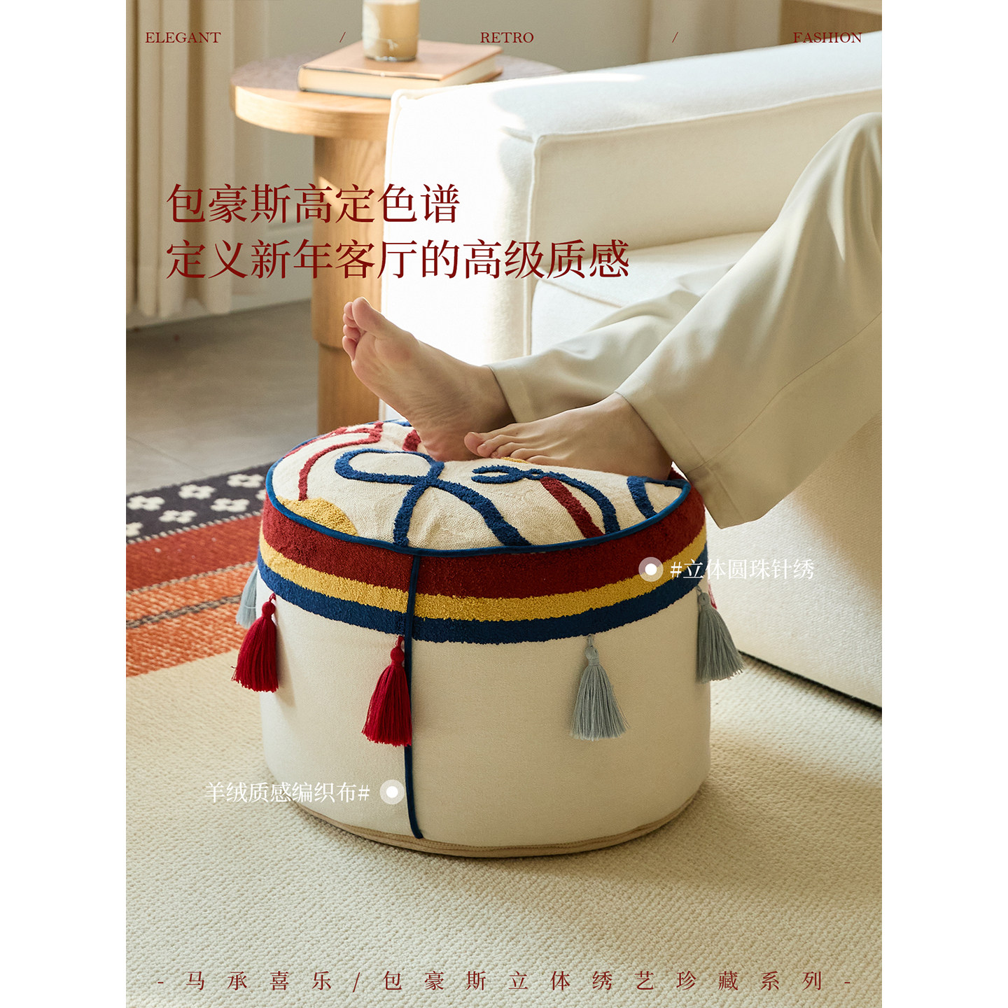 蜡笔派「马承喜乐」鞍络坐墩复古新年刺绣蒲团坐垫可拆洗换鞋凳