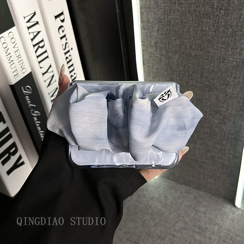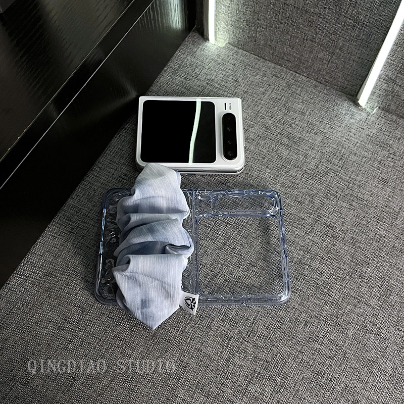 ins日韩褶皱透蓝晕染丝巾腕带适用于华为Pura X手机壳新款Pura X典藏版折叠屏p50宝盒翻盖时尚高级防摔保护套