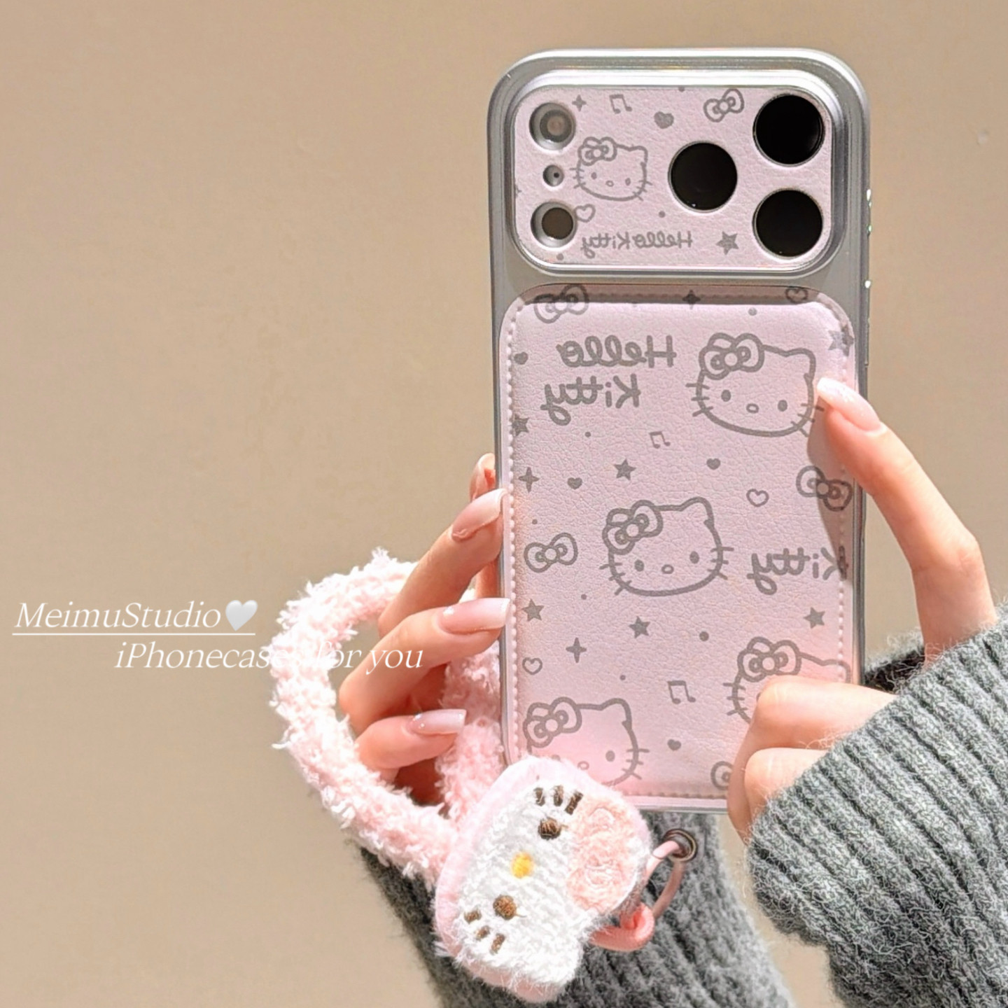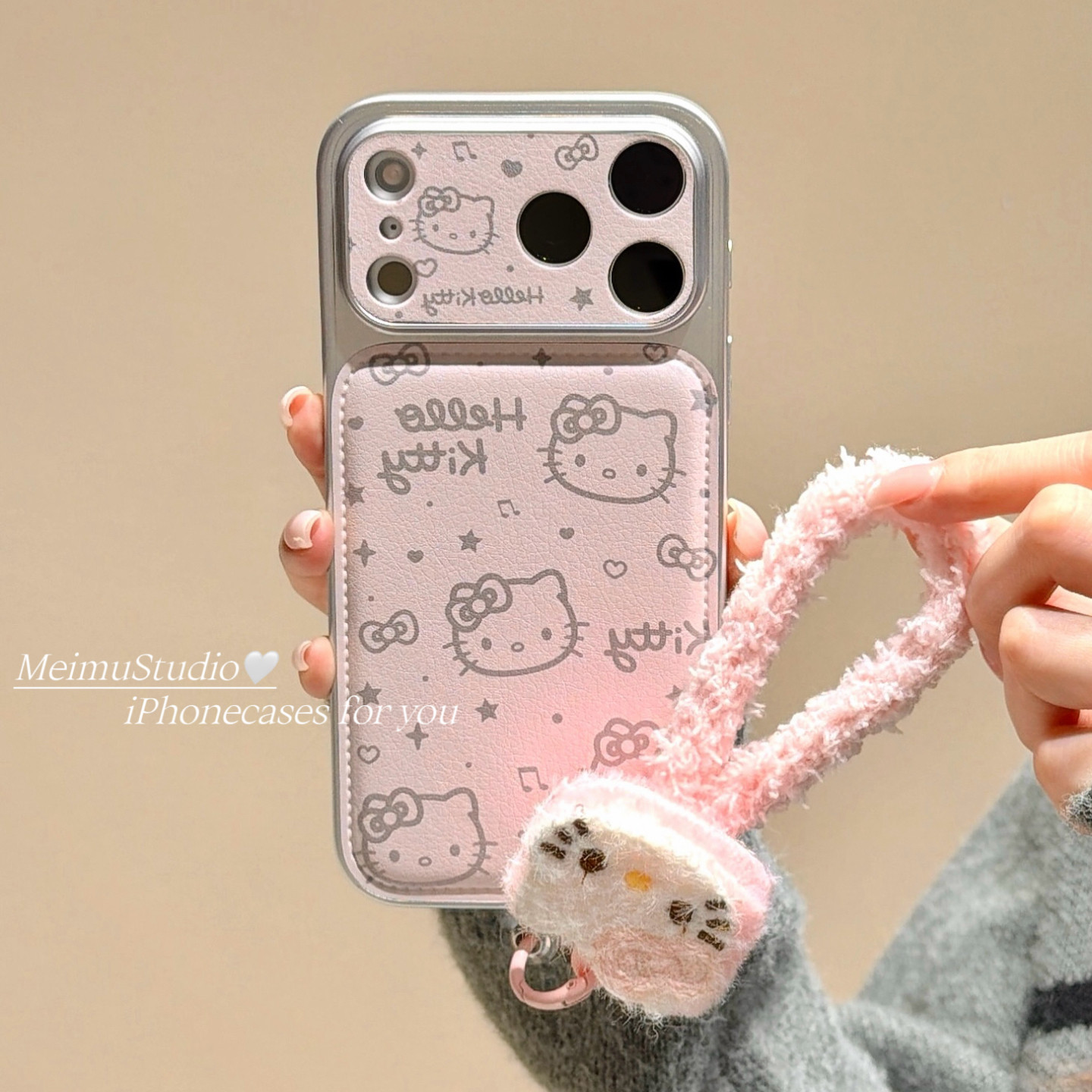 美牧ins甜美少女粉色线条猫咪适用苹果17pro手机壳iphone16promax新款15带挂绳17可爱14电镀15pm皮质16全包
