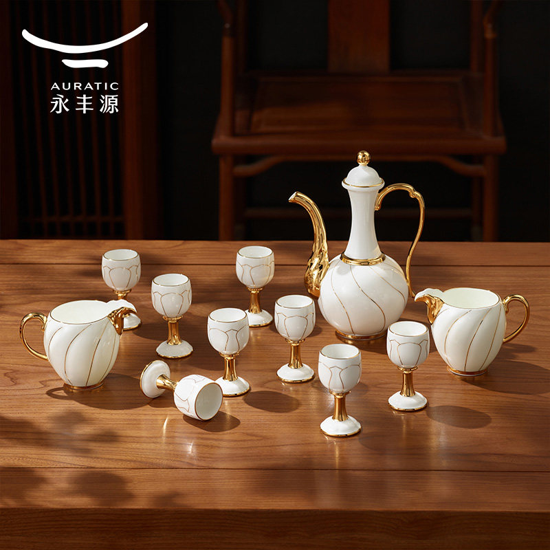 国瓷永丰源 盛世玉兰12头陶瓷酒具套装 酒店会所高档酒壶酒杯礼盒